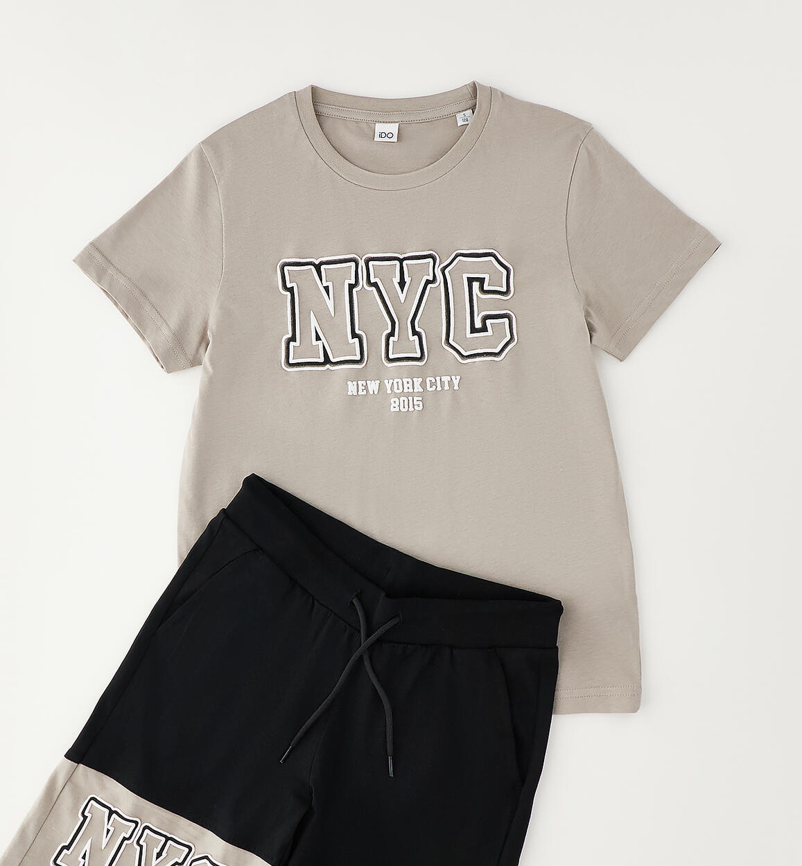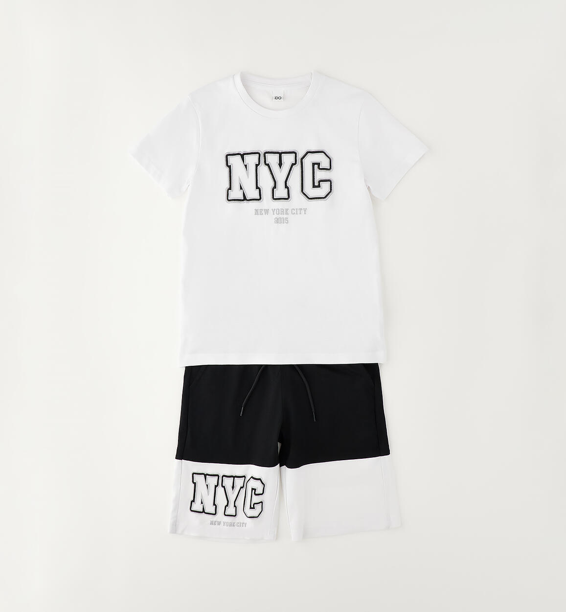 iDO boys' summer outfit made from 100% cotton jersey. The outfit consists of a T-shirt and knee-length pants.