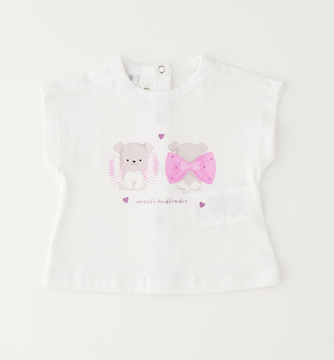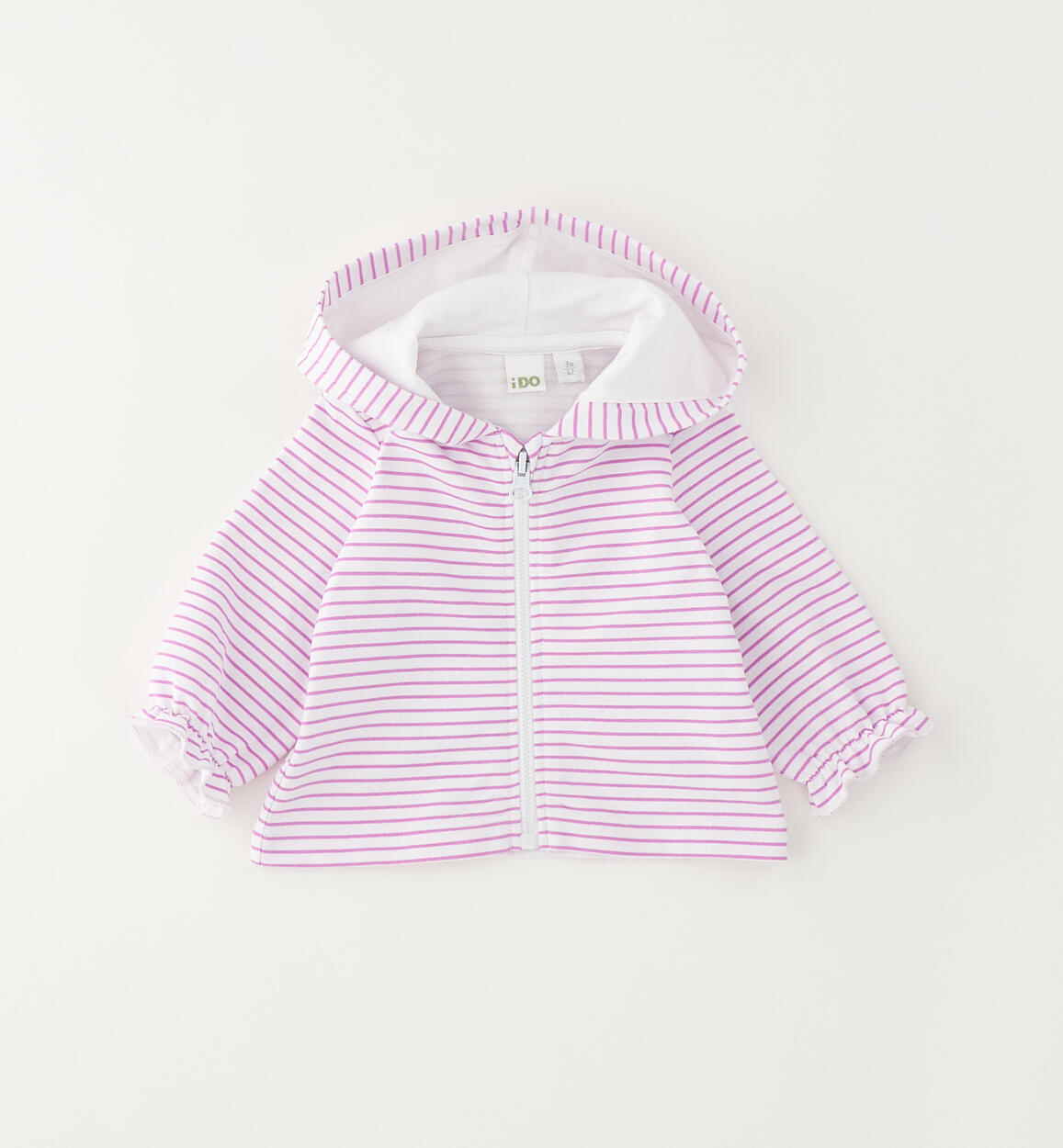 Three-piece set for girls aged 1 to 24 months, made from stretch cotton. The T-shirt is in stretch jersey with a print on the front, embellished with glitter details and a press stud fastening at the back. French terry sweatshirt with a striped pattern, hood and zip fastening. Gathered cuffs. Sweatshirt trousers with an elasticated waistband embellished with ruffles. Elasticated leg cuffs. By choosing our cotton products, you support our investment in the Better Cotton mission. This product is supplied through a mass balance system and may not contain Better Cotton. Read more at bettercotton.org/massbalance