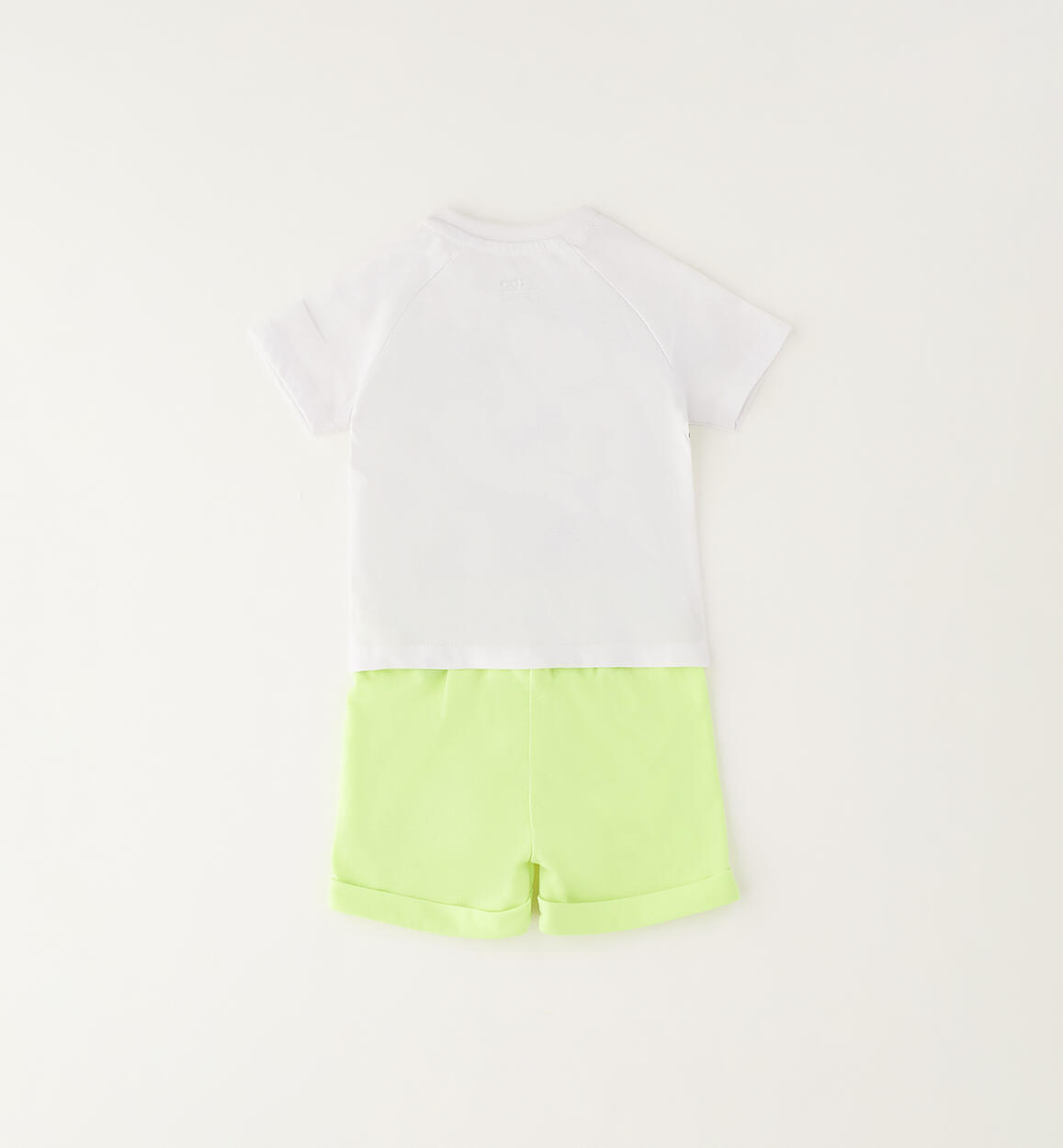iDO beach set for children aged 1 to 24 months. Cotton stretch jersey T-shirt with press stud fastening at the shoulder. Qualo print on the front. Fluorescent printed shorts with elasticated drawstring waist and turn-up hem. By choosing our cotton products, you are supporting our investment in the Better Cotton mission. This product is supplied through a mass balance system and may not contain Better Cotton. Read more at bettercotton.org/massbalance