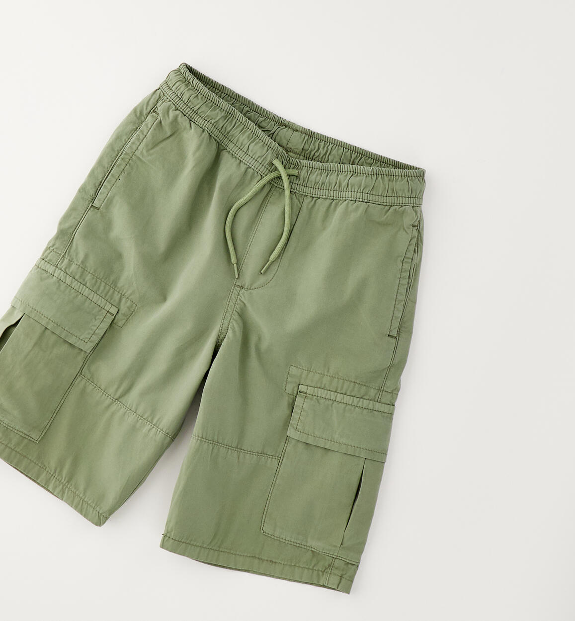 iDO boys' shorts made from 100% cotton poplin with large side pockets. Elasticated waistband and drawstring. Below-the-knee length. Regular fit.