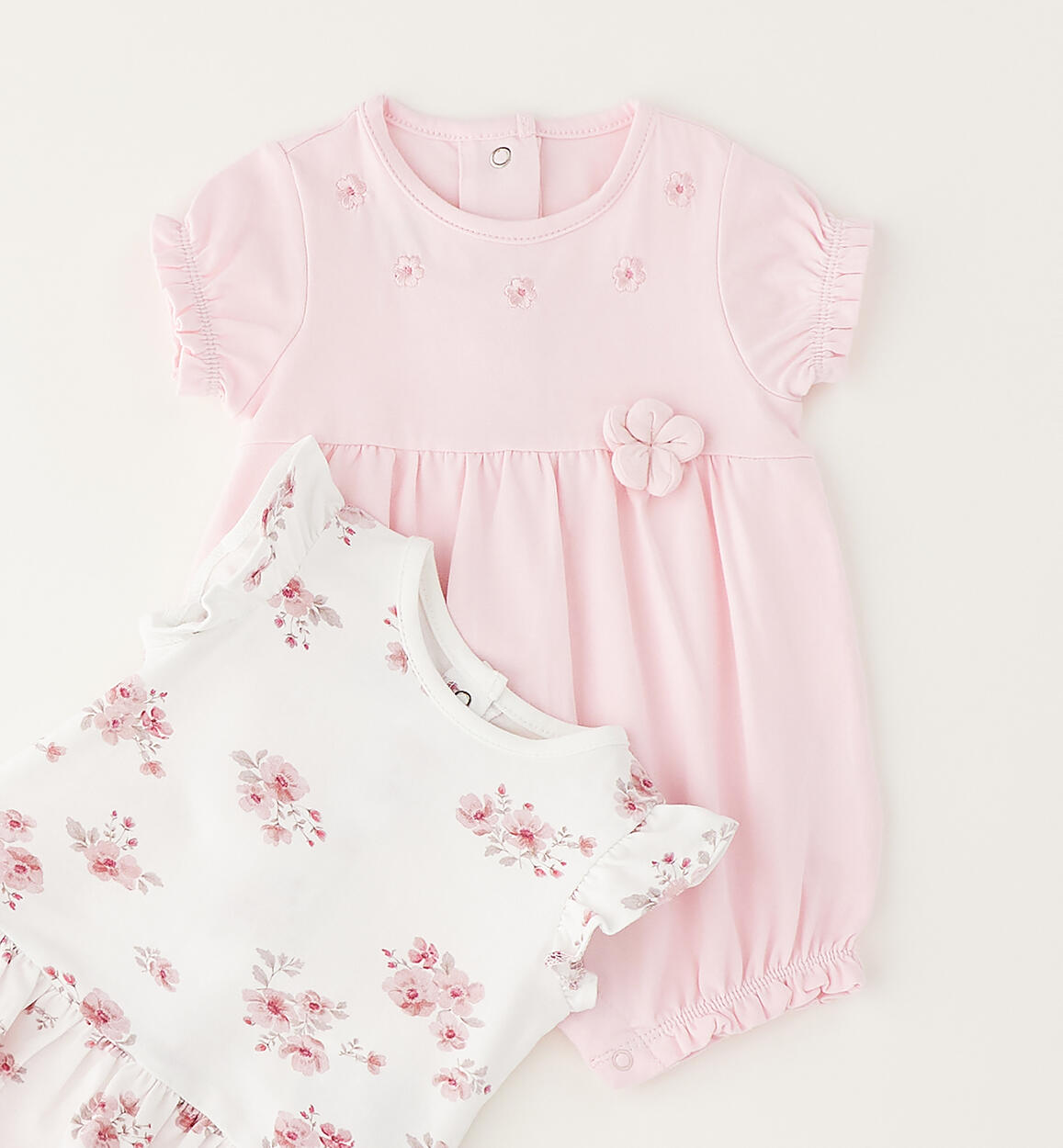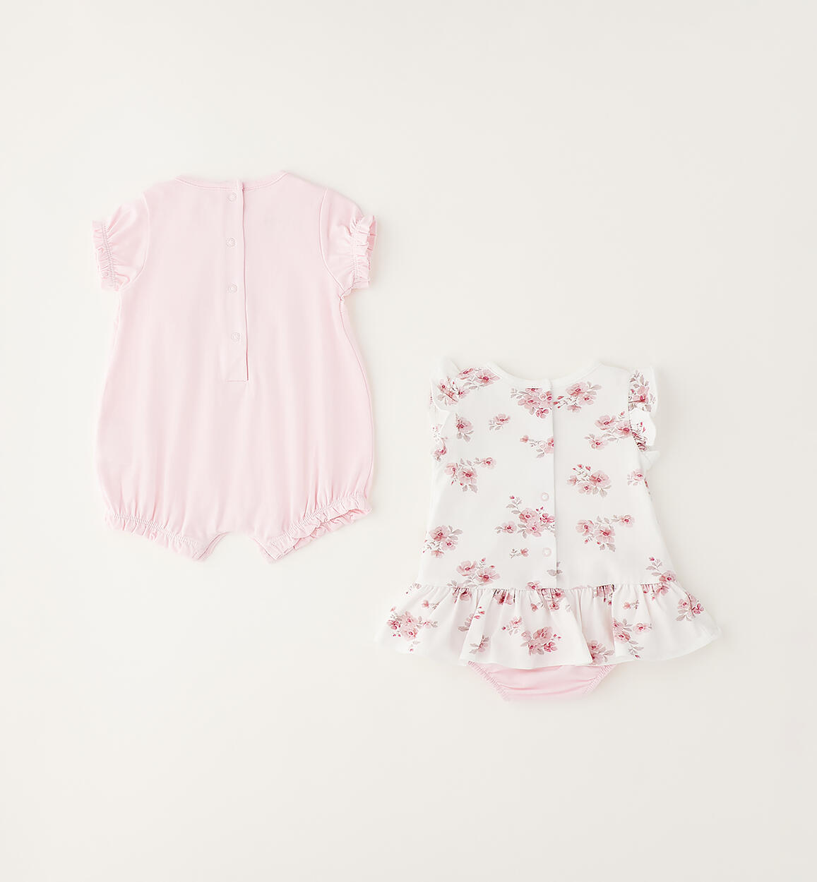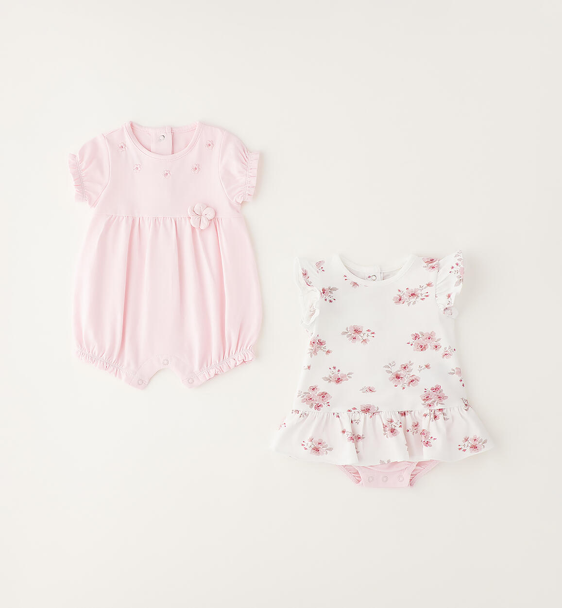 iDO two-piece short romper set for newborns aged 0 to 18 months made from stretch cotton jersey. Back and leg openings with snap buttons for easy changing and dressing. By choosing our cotton products, you support our investment in the Better Cotton mission. This product is supplied through a mass balance system and may not contain Better Cotton. Read more at bettercotton.org/massbalance