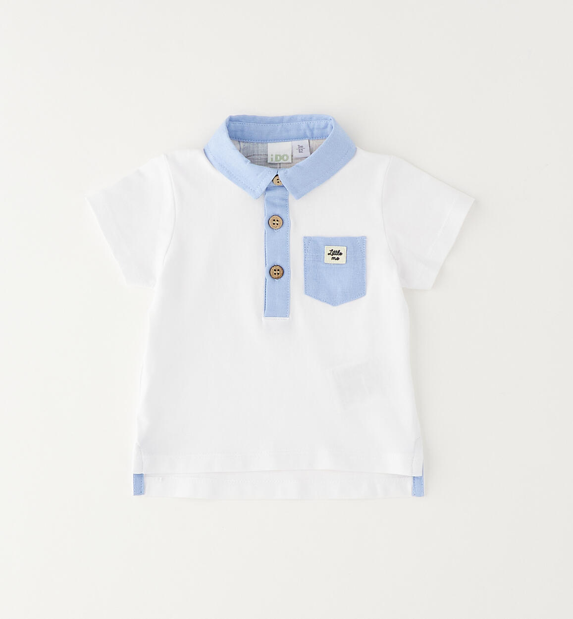 iDO polo shirt for children aged 1 to 24 months, made from stretch cotton jersey with linen and cotton details and pocket. Short-sleeved style with button-through front. By choosing our cotton products, you are supporting our investment in the Better Cotton mission. This product is supplied through a mass balance system and may not contain Better Cotton. Read more at bettercotton.org/massbalance