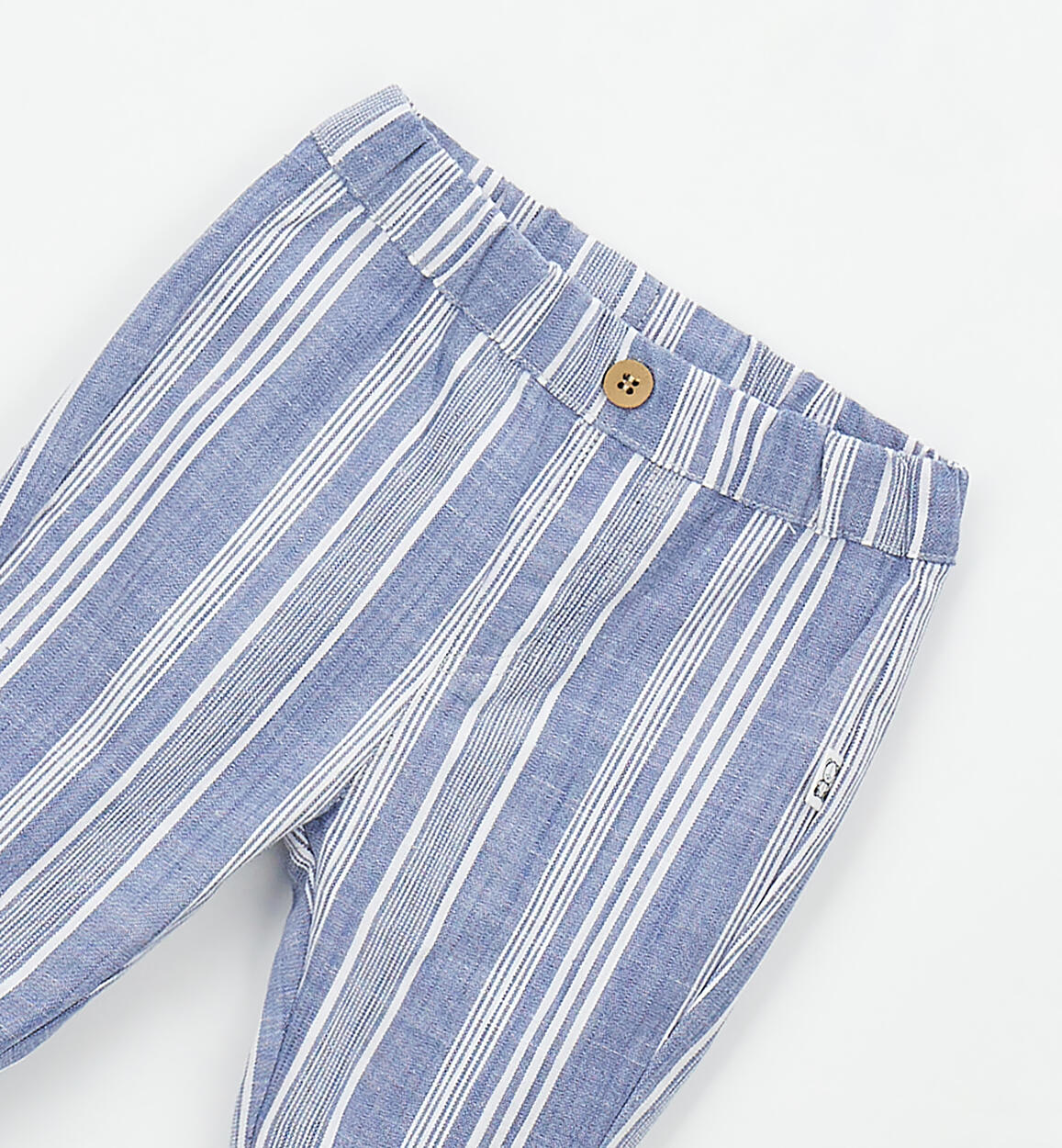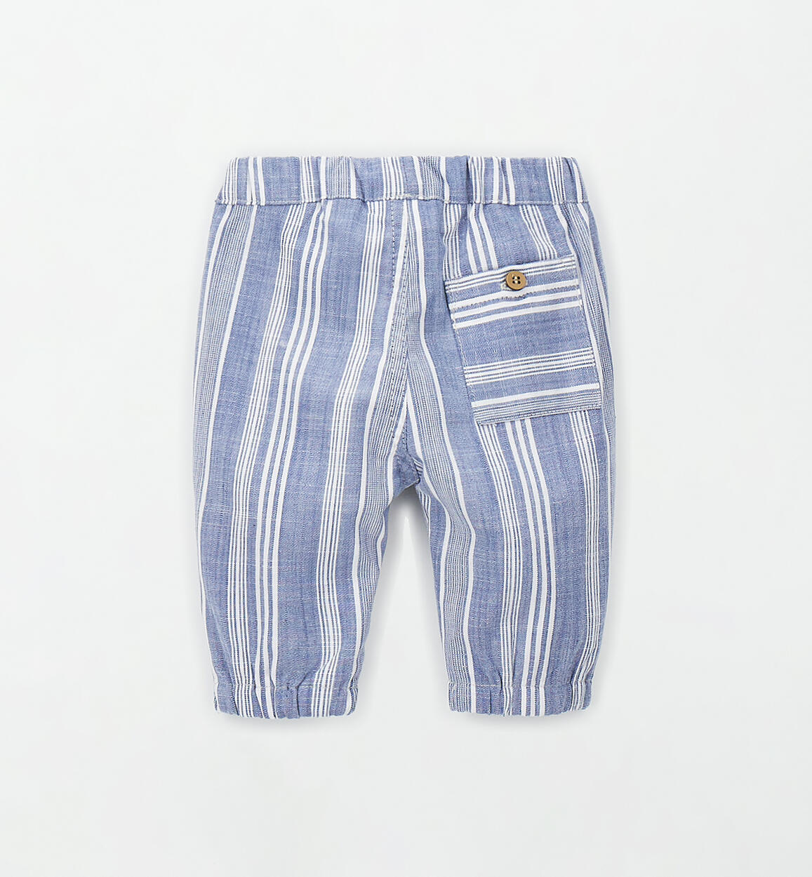 Cool iDO trousers for children aged 1 to 24 months, made from striped fabric. Elasticated at the bottom of the legs. Back pocket. Elasticated waistband.
