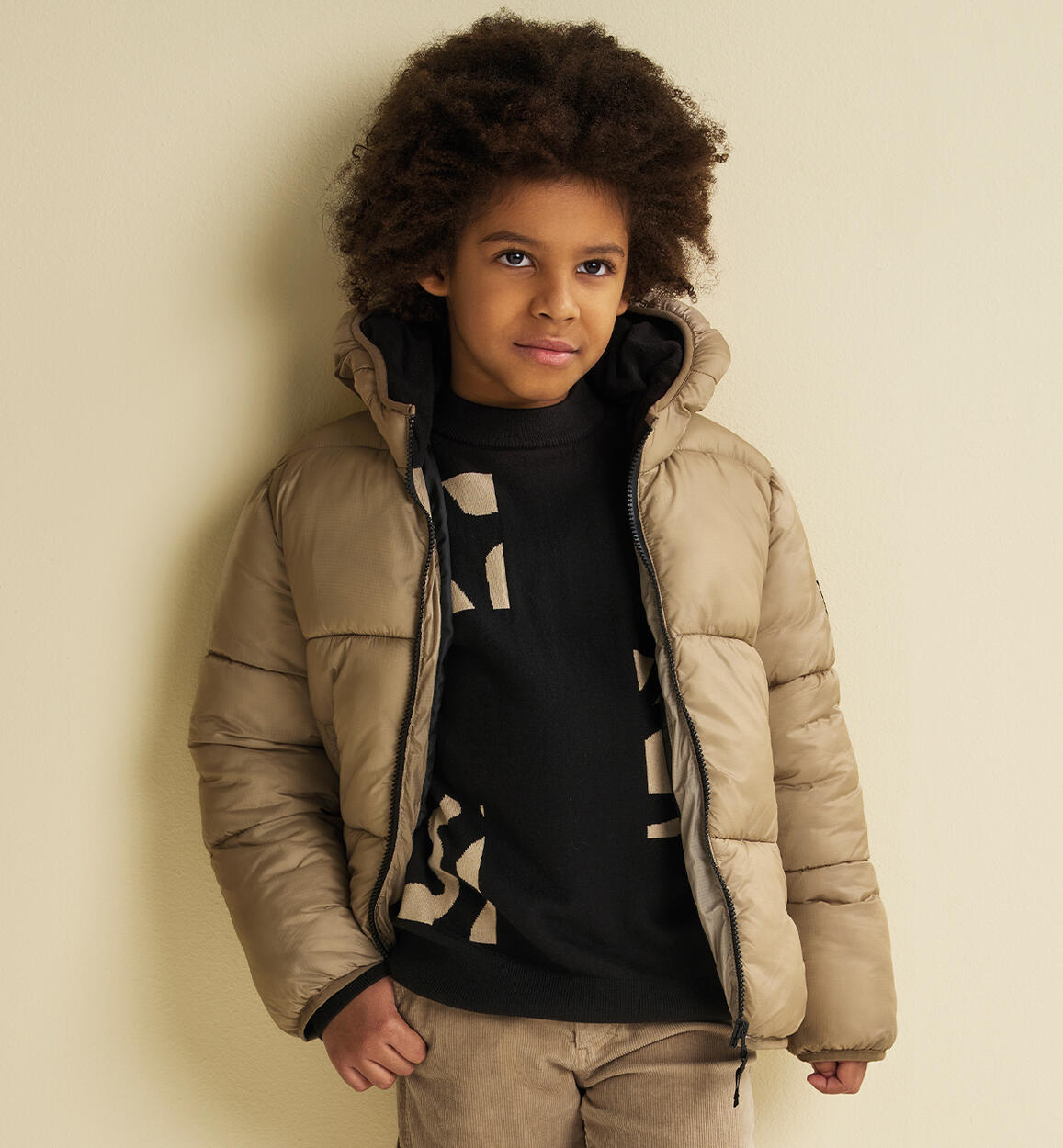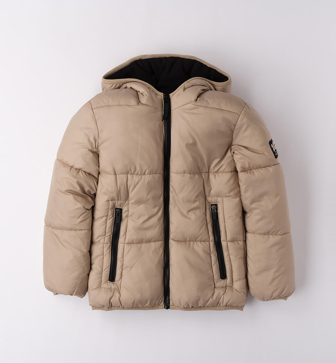 iDO Boy Jacket 8¿16 Years made of nylon fabric with wadding padding. Hood lined with fleece and zip closure. Zero feathers: 100% down-free. Zero cold: protects from water, cold, and wind. Zero stress: easy care and maintenance.