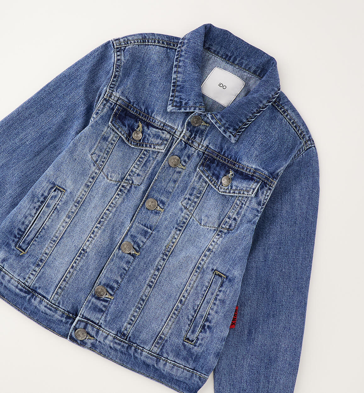 iDO boys' denim jacket made from 100% cotton denim. Slightly dropped shoulders.