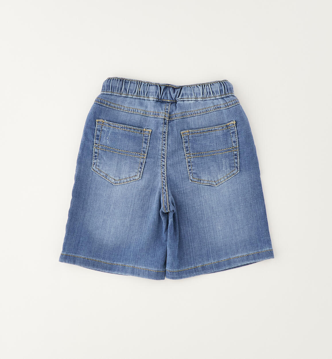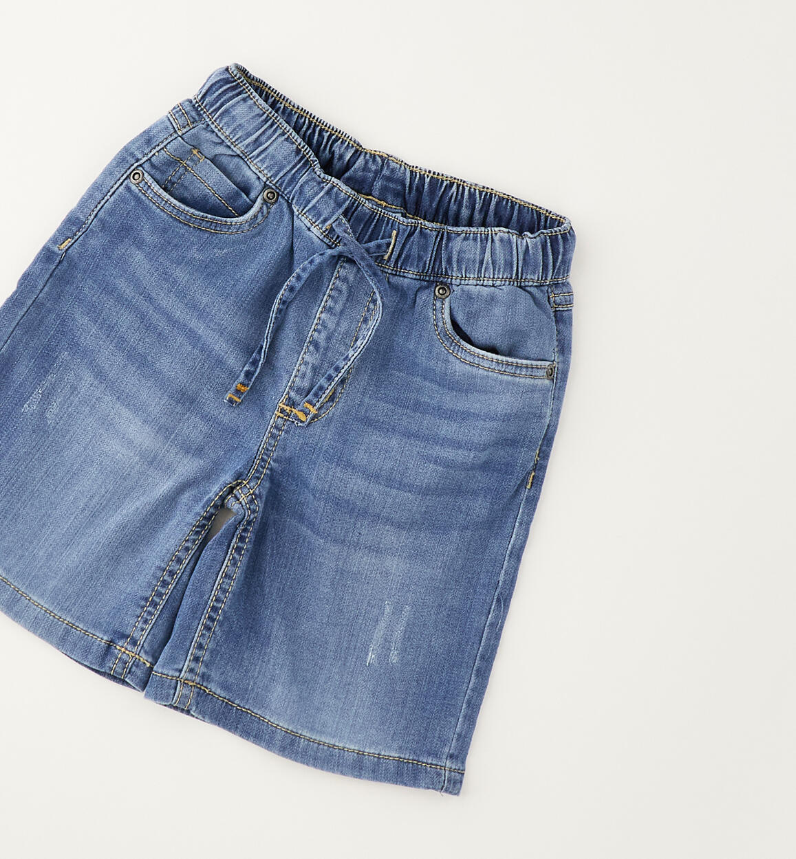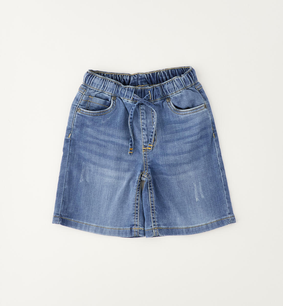 iDO boys' stretch cotton knit denim shorts. Elasticated waistband with drawstring. Model embellished with slits. Regular fit. Adjustable waist with internal elasticated drawstring. Below-the-knee length. By choosing our cotton products, you support iDO's commitment to the Better Cotton mission. This product is supplied through a mass balance system and may not contain Better Cotton. Read more at bettercotton.org/massbalance