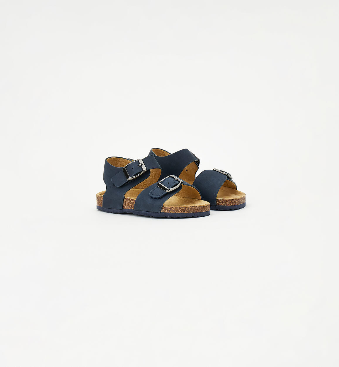 Blue faux leather sandals for boys with a fussbett sole and an ankle strap with adjustable buckles. iDO shoes are made in collaboration with Asso.