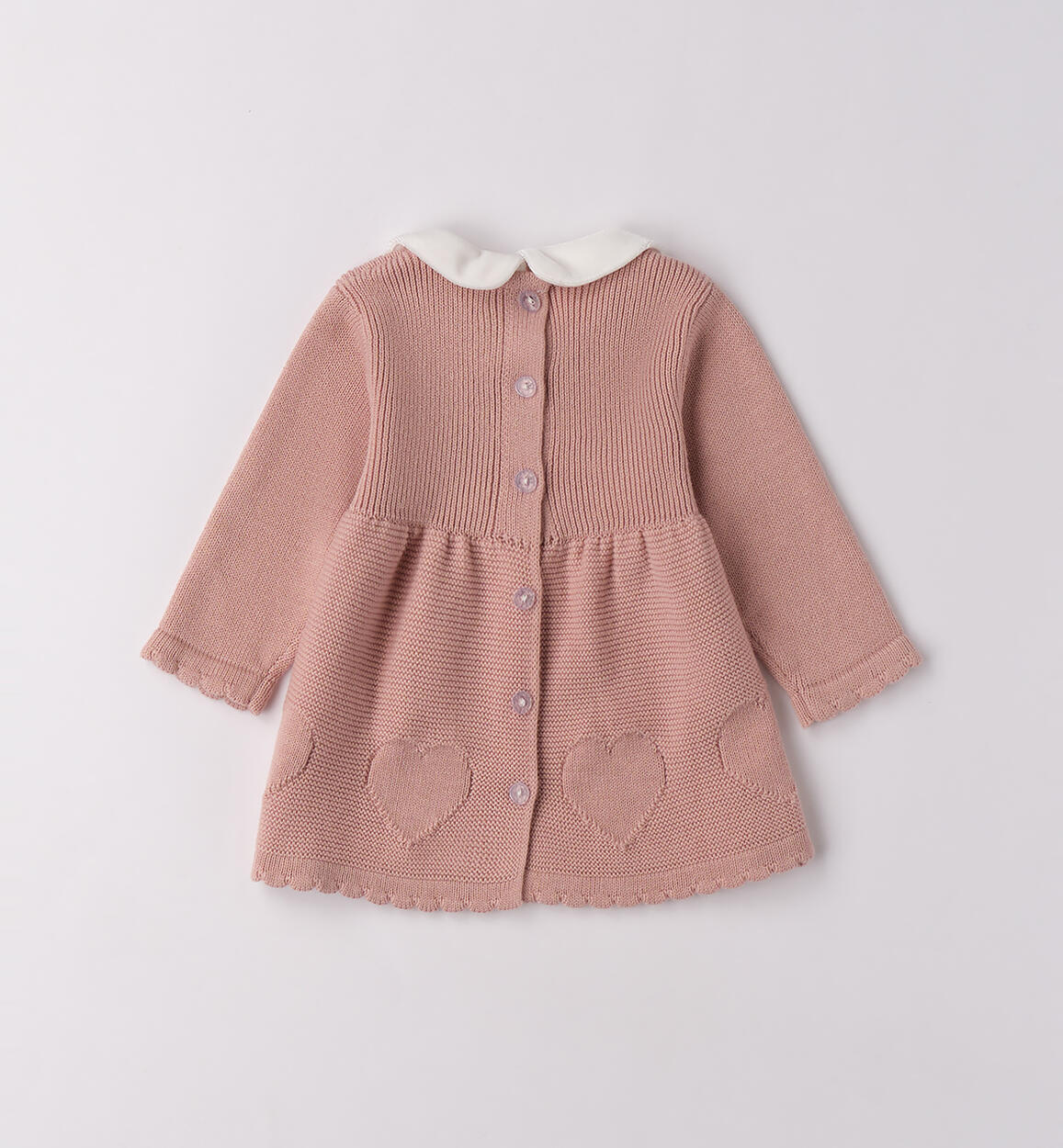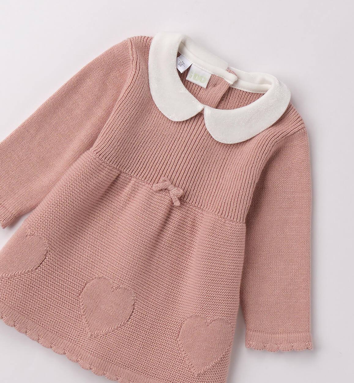 Dress for baby girl iDO 1¿24 months made of 100% cotton tricot, winter weight. The model features back opening with buttons. Above-the-knee length. By choosing our cotton products, you support our investment in the Better Cotton mission. This product is sourced via a mass balance system and may not contain Better Cotton. Learn more at bettercotton.org/massbalance