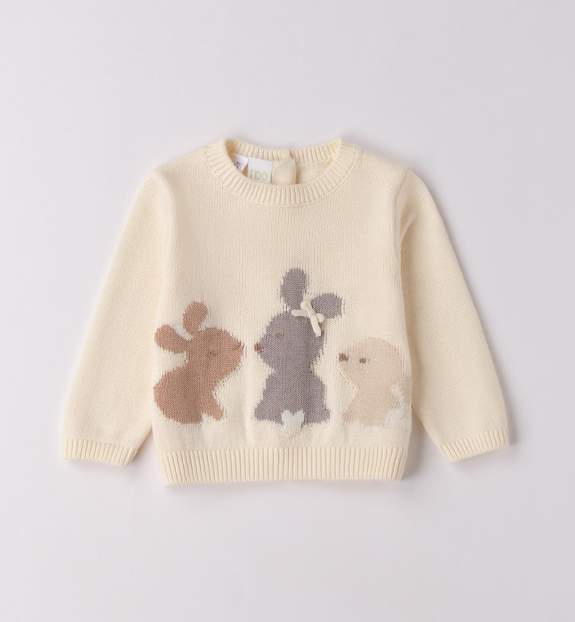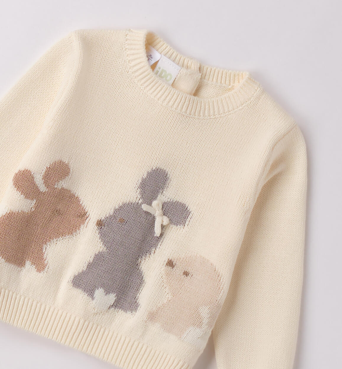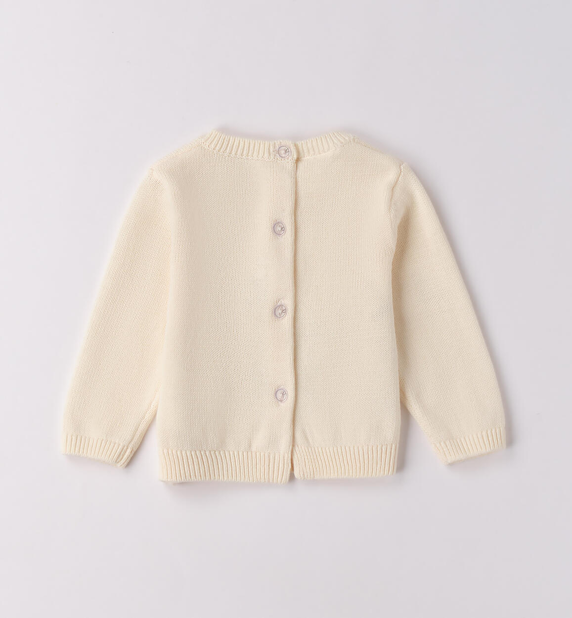 Sweater for baby girl iDO 1¿24 months made of 100% cotton tricot. The model features back button opening and sweet intarsia embroidery on the front. By choosing our cotton products, you support our investment in the Better Cotton mission. This product is sourced via a mass balance system and may not contain Better Cotton. Learn more at bettercotton.org/massbalance.