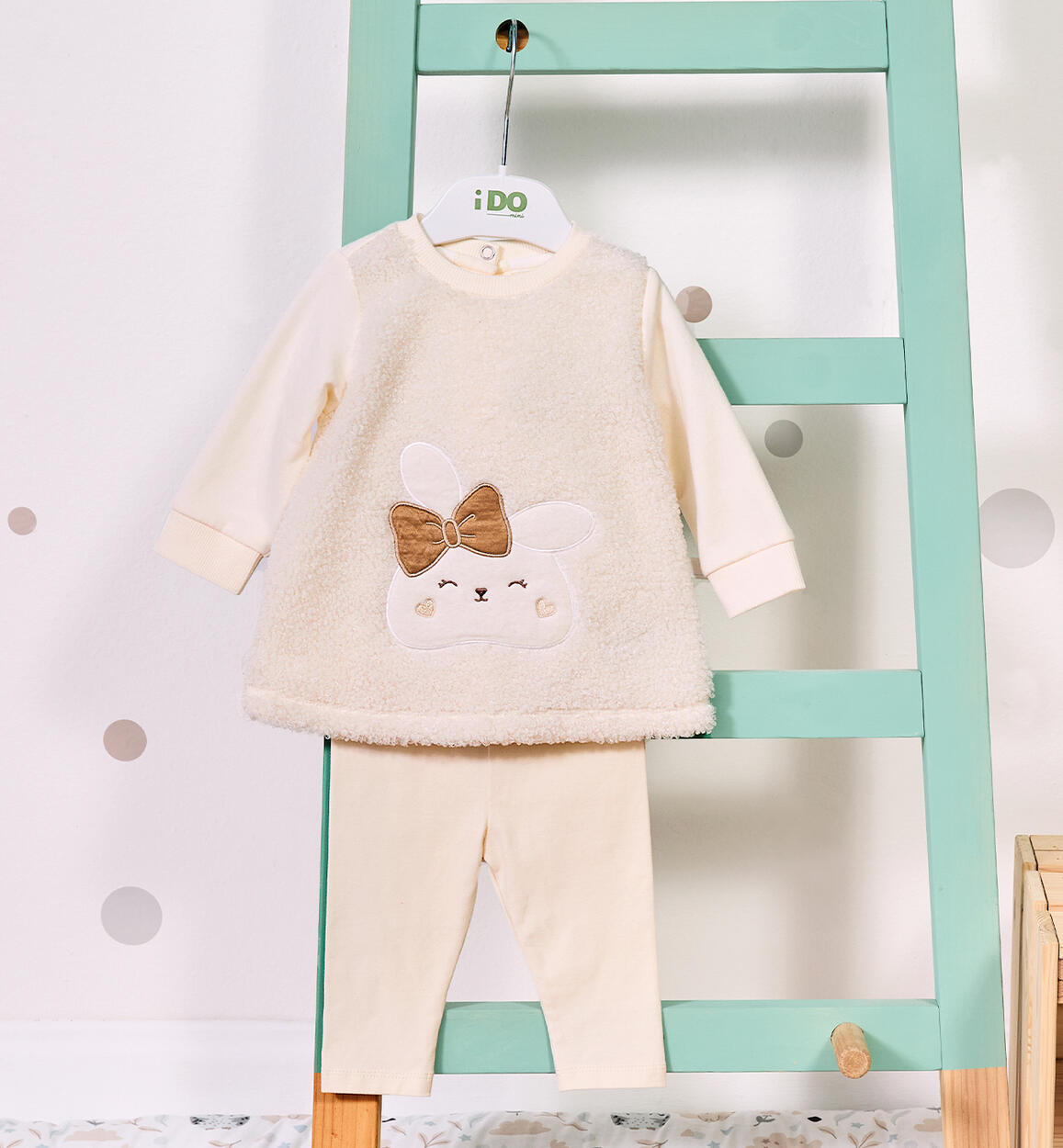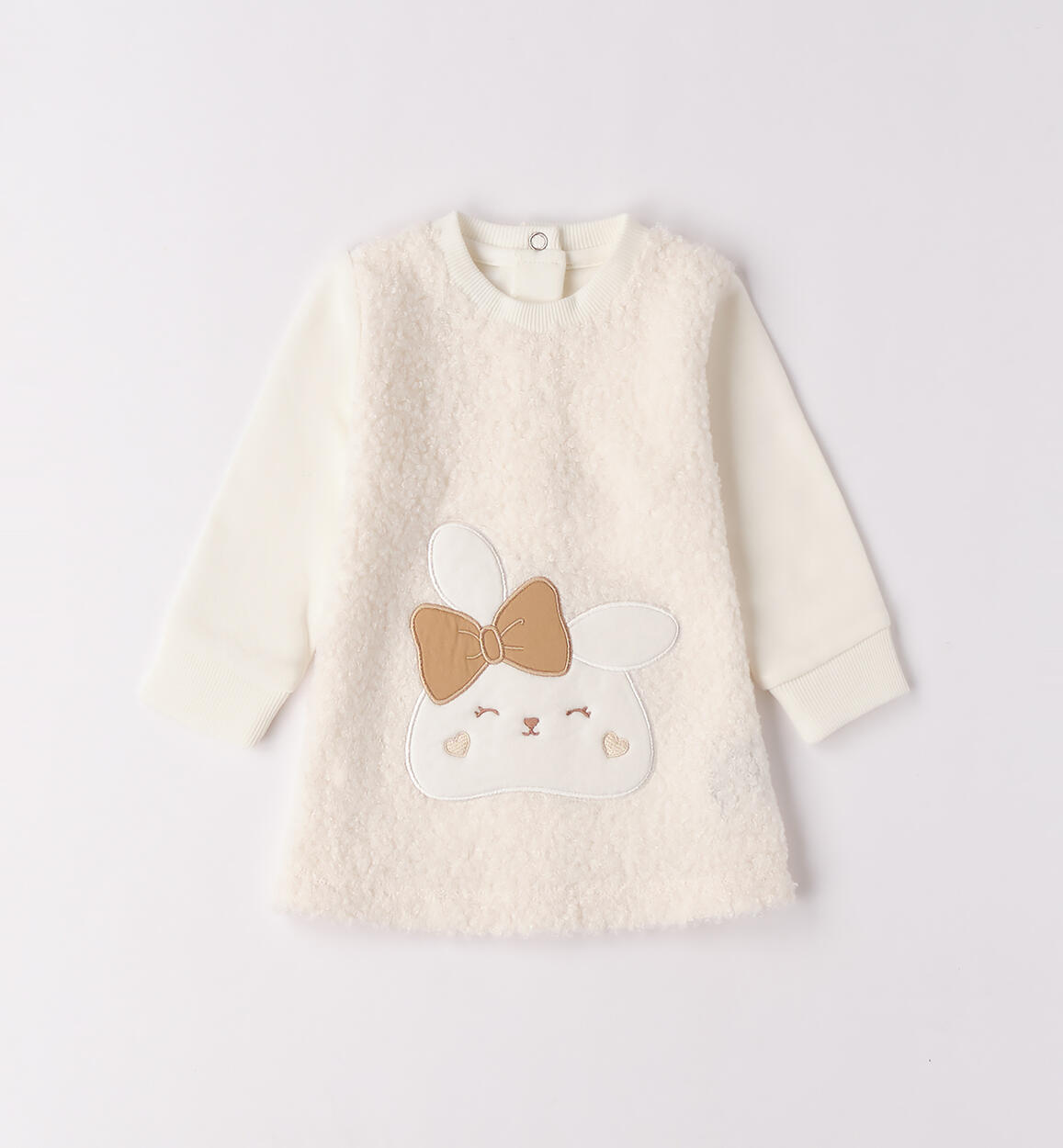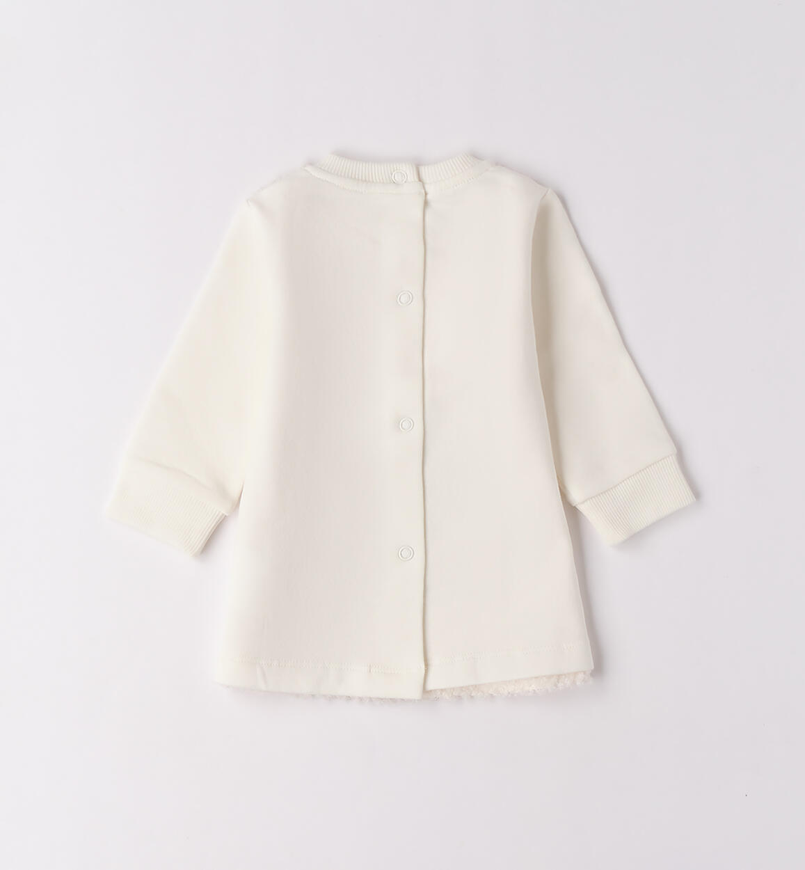 Dress for baby girl iDO 1¿24 months made of warm and soft fabric. The model features back opening with snap buttons. Above-the-knee length. By choosing our cotton products, you support our investment in the Better Cotton mission. This product is sourced via a mass balance system and may not contain Better Cotton. Learn more at bettercotton.org/massbalance.