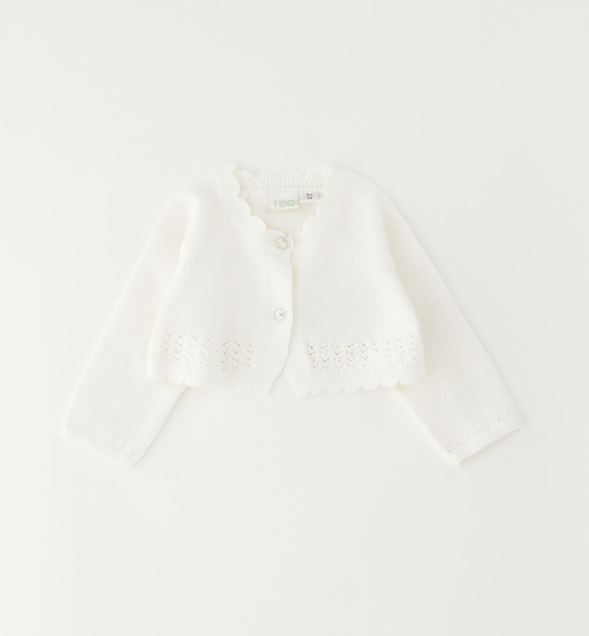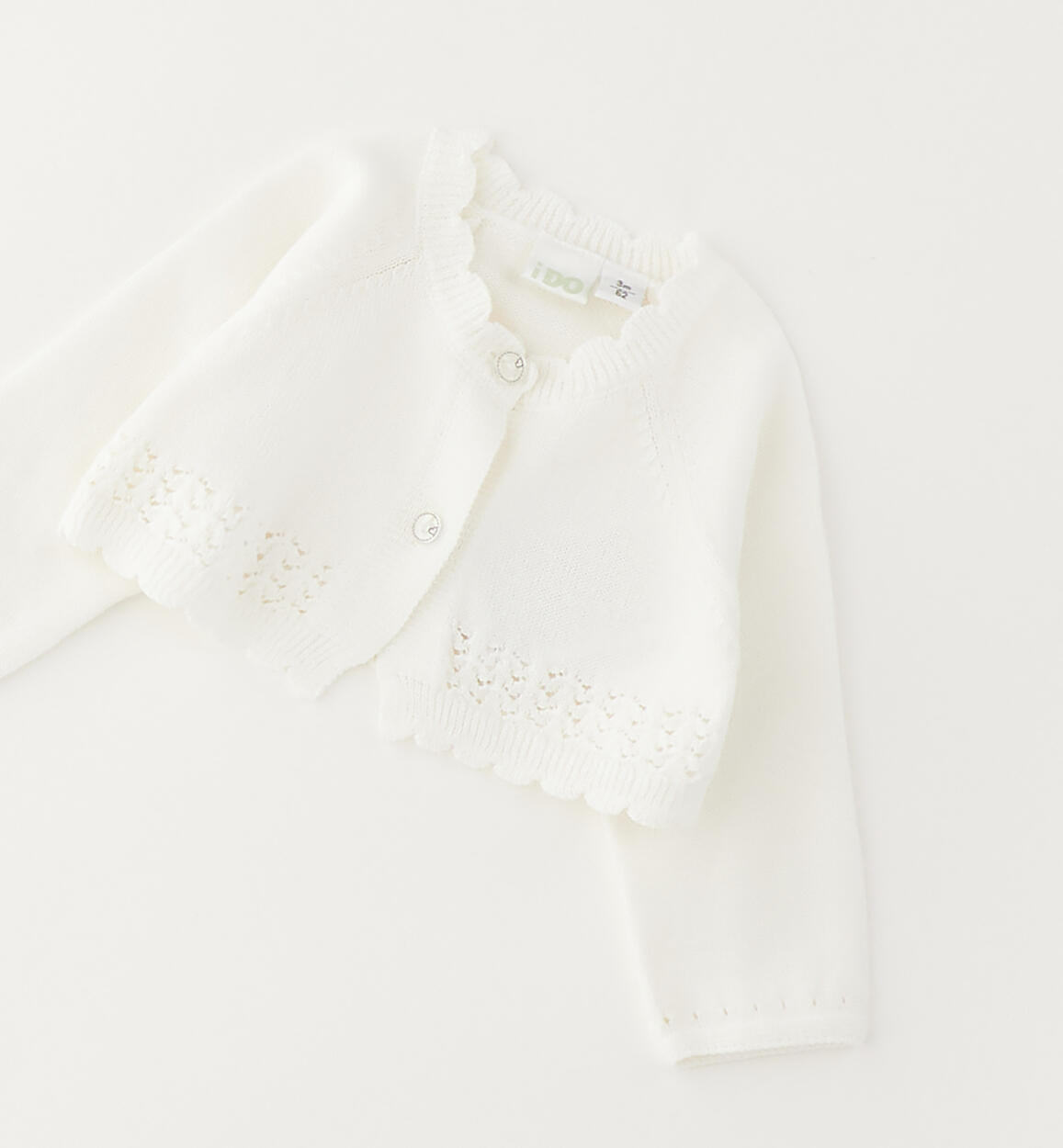 iDO cardigan in 100% cotton knit for girls aged 1 to 24 months. Openwork detail. Button fastening. By choosing our cotton products, you support our investment in the Better Cotton mission. This product is supplied through a mass balance system and may not contain Better Cotton. Read more at bettercotton.org/massbalance