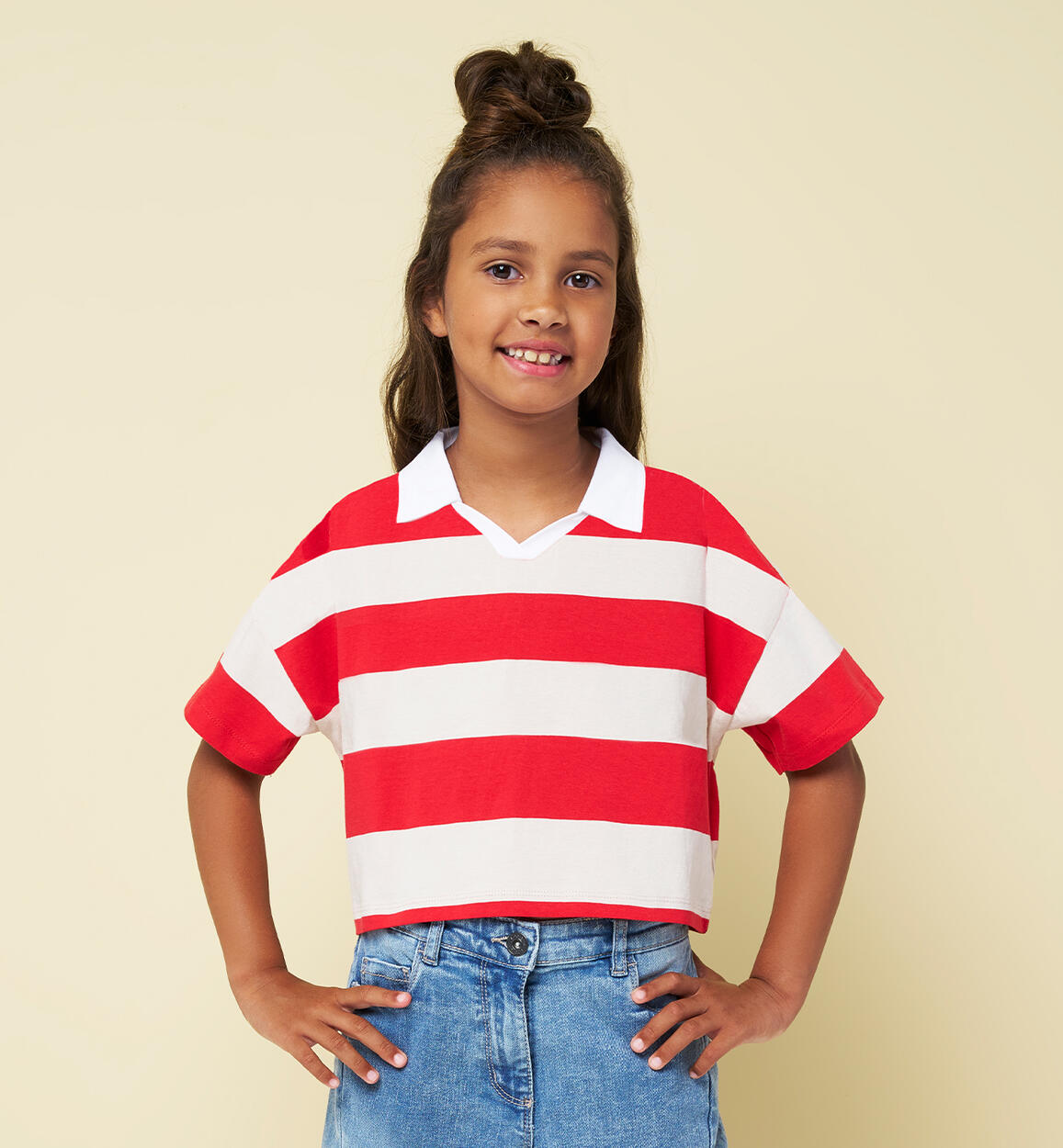 iDO girls' T-shirt made from 100% cotton jersey with a striped pattern