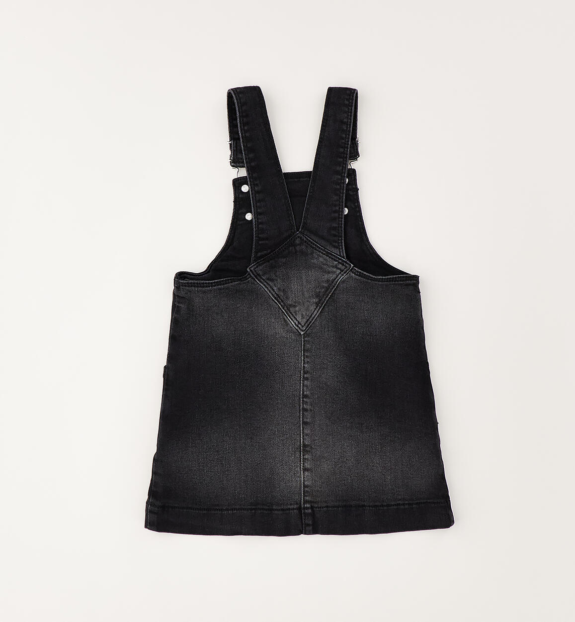 Superstretch denim skirt overalls for girls by iDO. Adjustable straps and front pocket embellished with small studs. By choosing our cotton products, you support iDO's commitment to the Better Cotton mission. This product is supplied through a mass balance system and may not contain Better Cotton. Read more at bettercotton.org/massbalance
