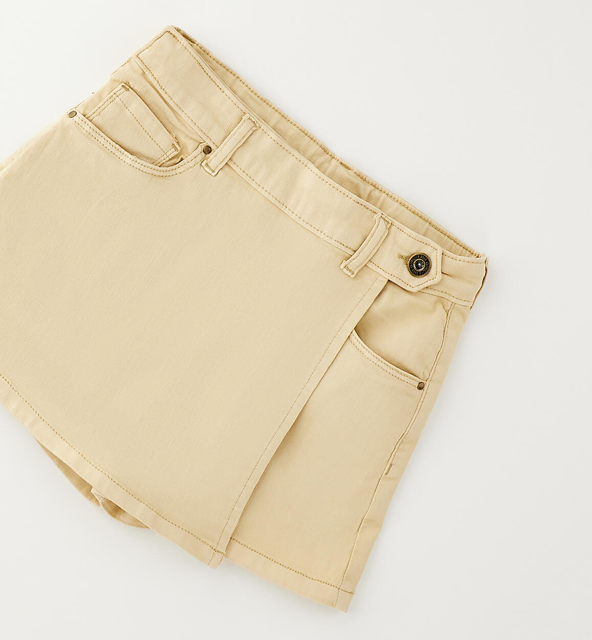 iDO girls' shorts made from cotton slub twill with a skirt effect. Zip and button fastening. Adjustable waist with internal elasticated drawstring.