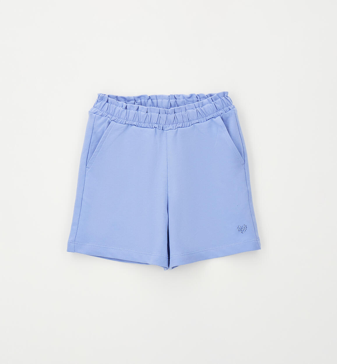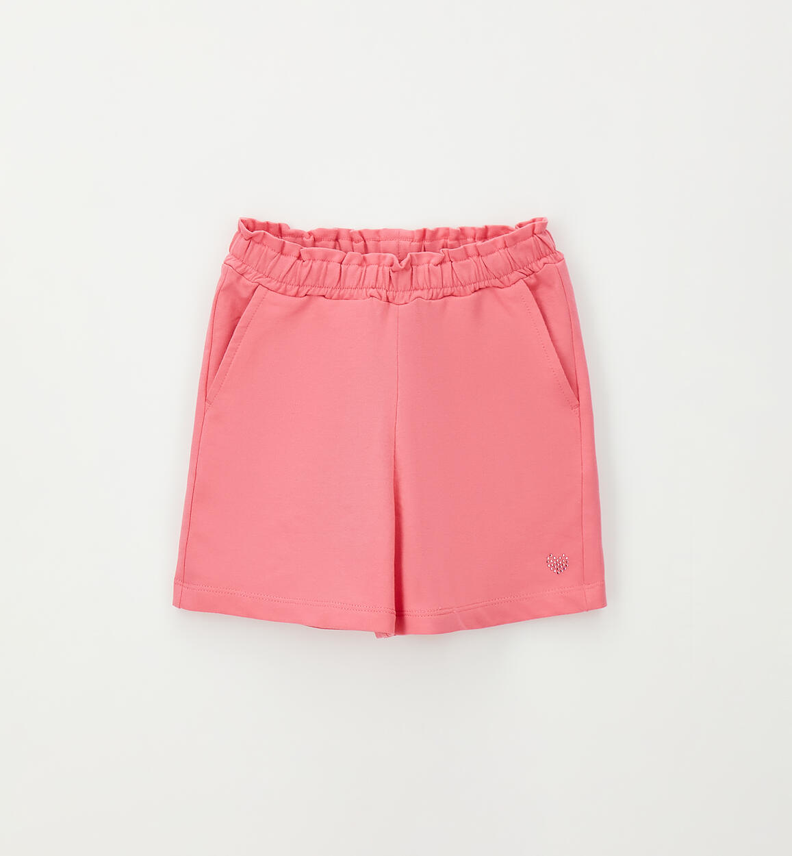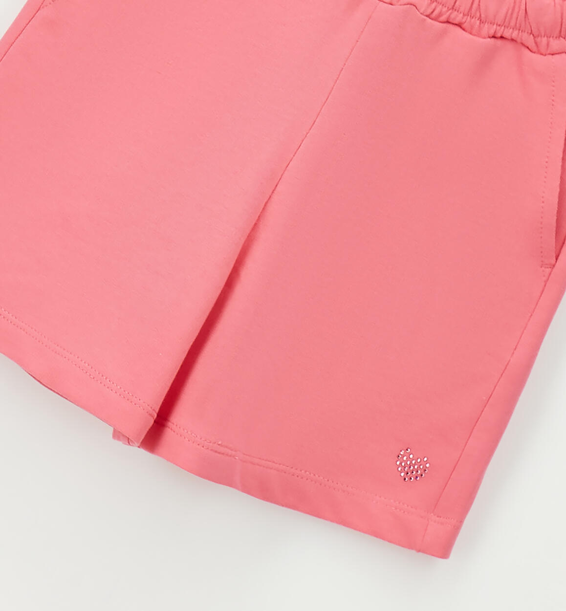 100% cotton fleece shorts for girls by iDO. Elasticated waistband with drawstring and rhinestone heart. By choosing our cotton products, you support iDO's commitment to the Better Cotton mission. This product is supplied through a mass balance system and may not contain Better Cotton. Read more at bettercotton.org/massbalance