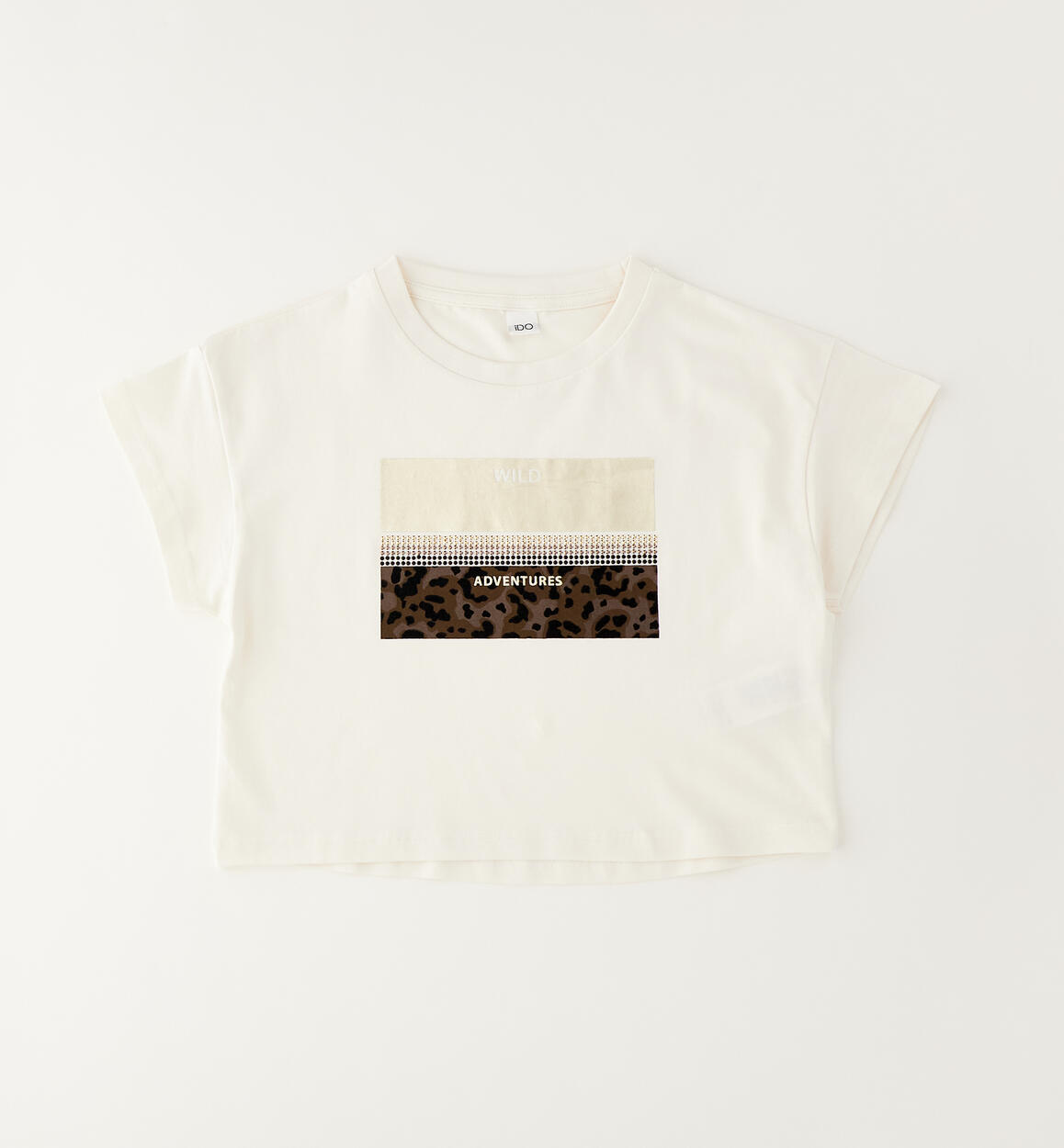 iDO girls' T-shirt made from stretch cotton jersey with print on the front. Cropped style.