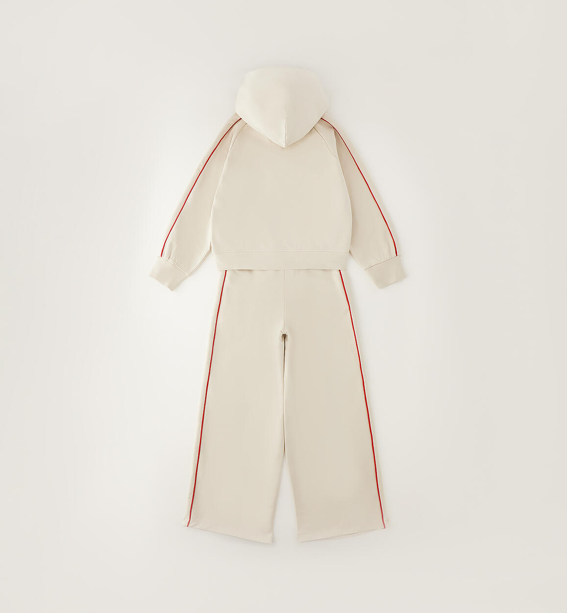 Two-piece jogging suit for girls by iDO, made from stretch cotton sweatshirt fabric with embroidery. Hooded sweatshirt with zip fastening. Comfortable, loose-fitting trousers with elasticated waist and drawstring.