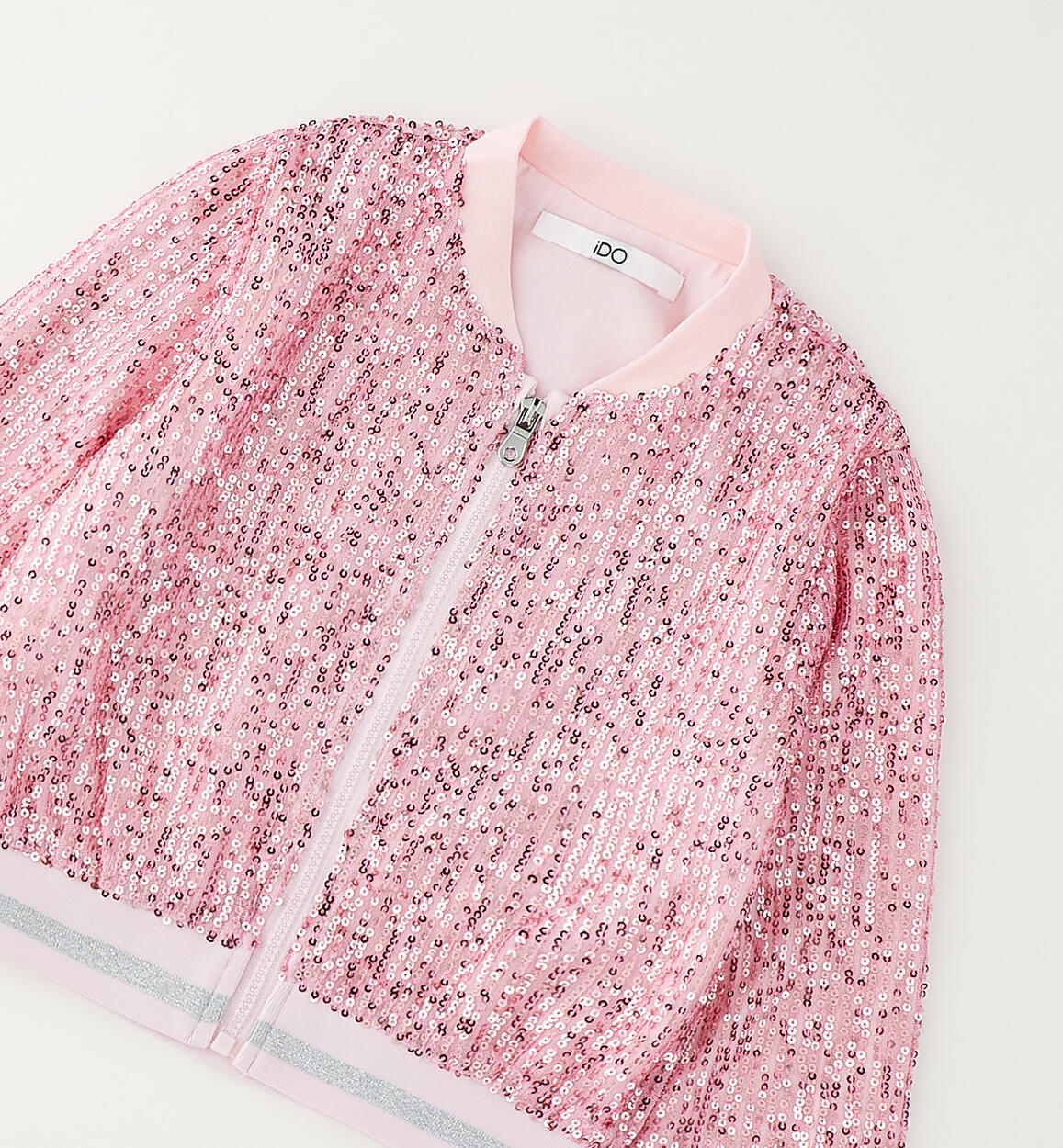 iDO girls' jacket in sequin-embroidered tulle with cotton jersey lining. Elastic waistband with lurex details. Zip fastening. By choosing our cotton products, you support iDO's commitment to the Better Cotton mission. This product is supplied through a mass balance system and may not contain Better Cotton. Read more at bettercotton.org/massbalance