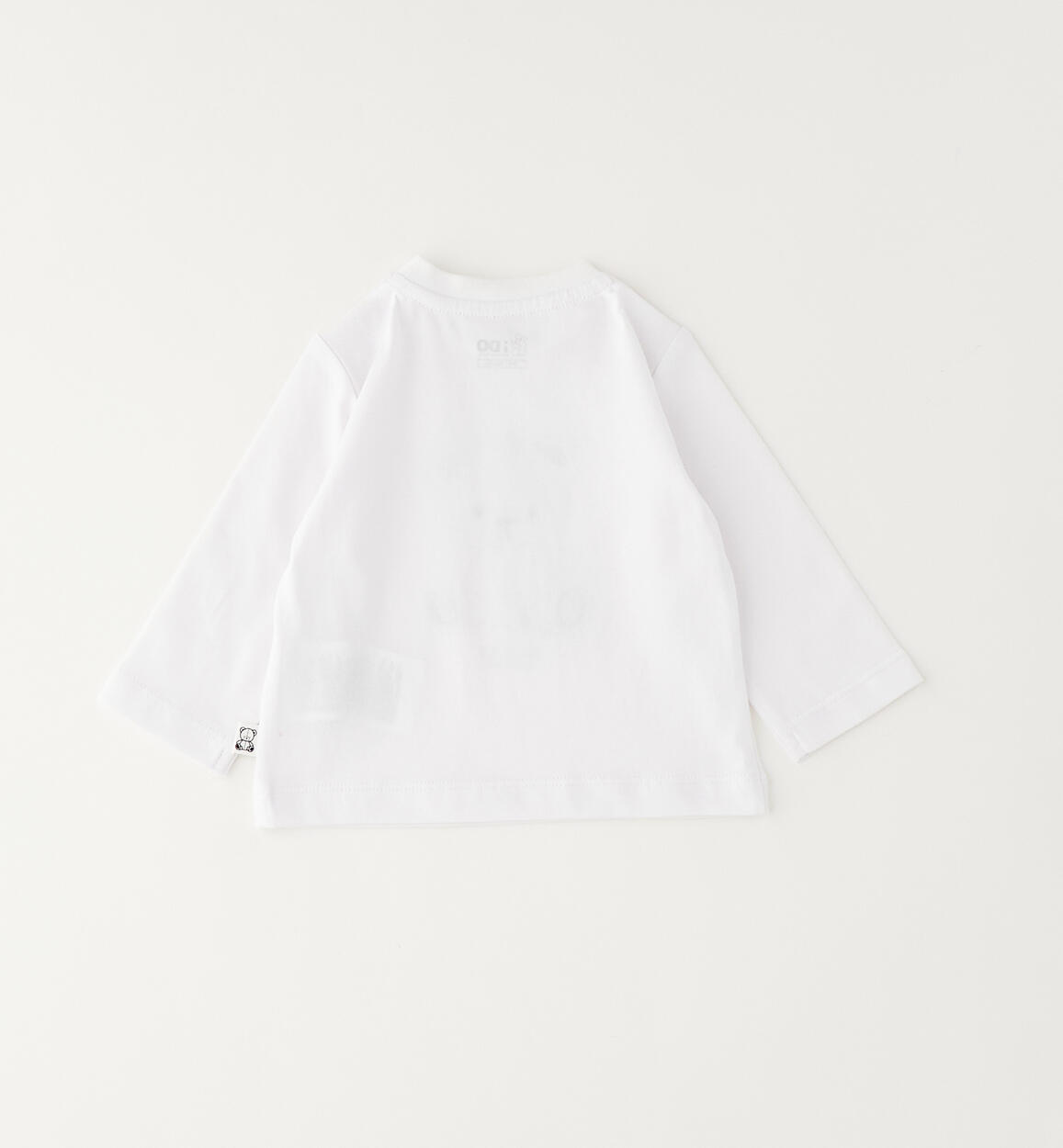 iDO round neck T-shirt for ages 1 to 24 months, made from 100% cotton jersey with press stud fastening at the shoulder. Small printed text and embroidered bear. By choosing our cotton products, you are supporting our investment in the Better Cotton mission. This product is supplied through a mass balance system and may not contain Better Cotton. Read more at bettercotton.org/massbalance