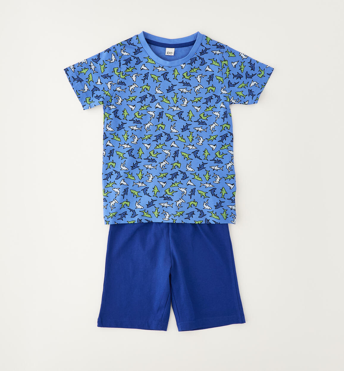iDO boys' short pyjamas made from 100% cotton jersey with shark print. By choosing our cotton products, you support iDO's commitment to the Better Cotton mission. This product is supplied through a mass balance system and may not contain Better Cotton. Read more at bettercotton.org/massbalance