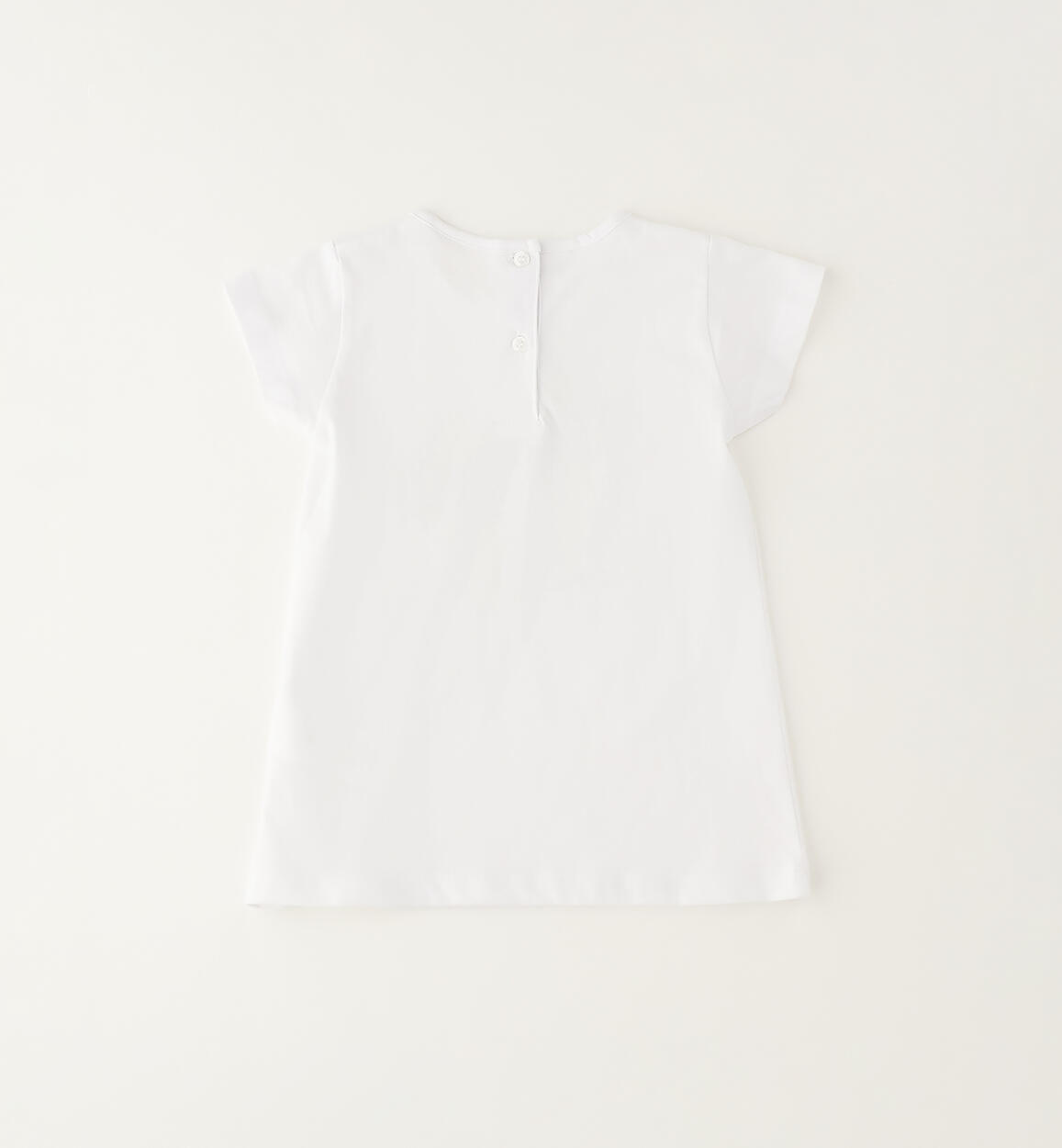 iDO girls' T-shirt made from 100% cotton jersey with rhinestone print. By choosing our cotton products, you support iDO's commitment to the Better Cotton mission. This product is supplied through a mass balance system and may not contain Better Cotton. Read more at bettercotton.org/massbalance