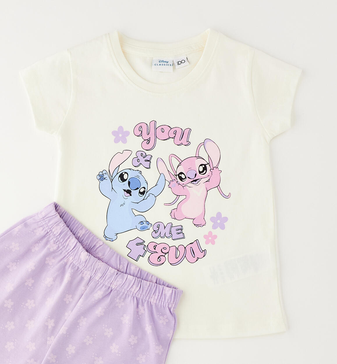 iDO two-piece pyjamas for girls made from 100% cotton jersey with Lilo & Stitch print. By choosing our cotton products, you support our investment in the Better Cotton Initiative. This product is supplied through a mass balance system and may not contain Better Cotton. Read more at bettercotton.org/massbalance