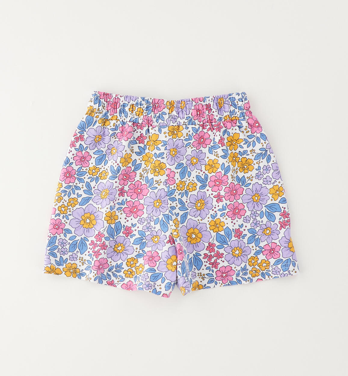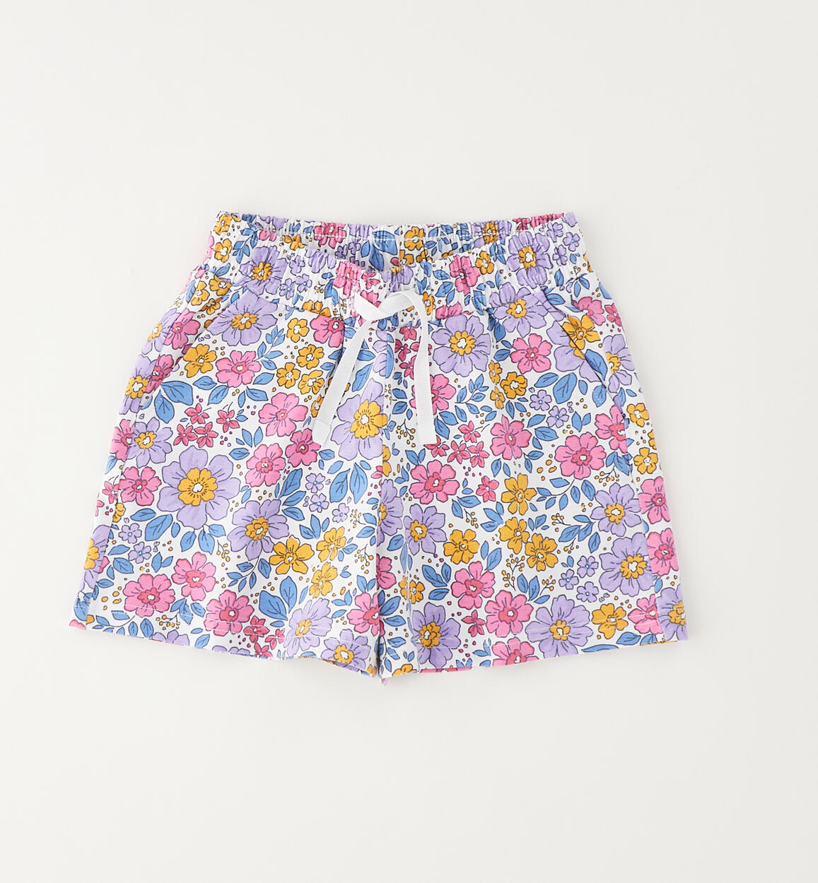iDO girls' shorts made from stretch cotton jersey with an all-over floral print. Elasticated waistband and drawstring. By choosing our cotton products, you are supporting iDO's commitment to the Better Cotton mission. This product is supplied through a mass balance system and may not contain Better Cotton. Read more at bettercotton.org/massbalance