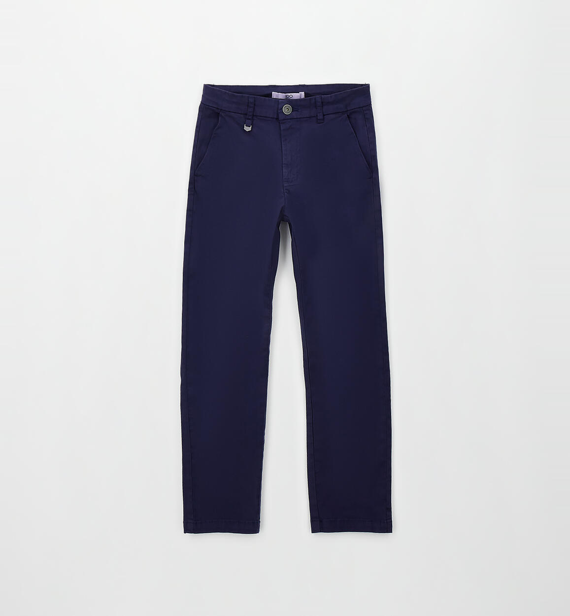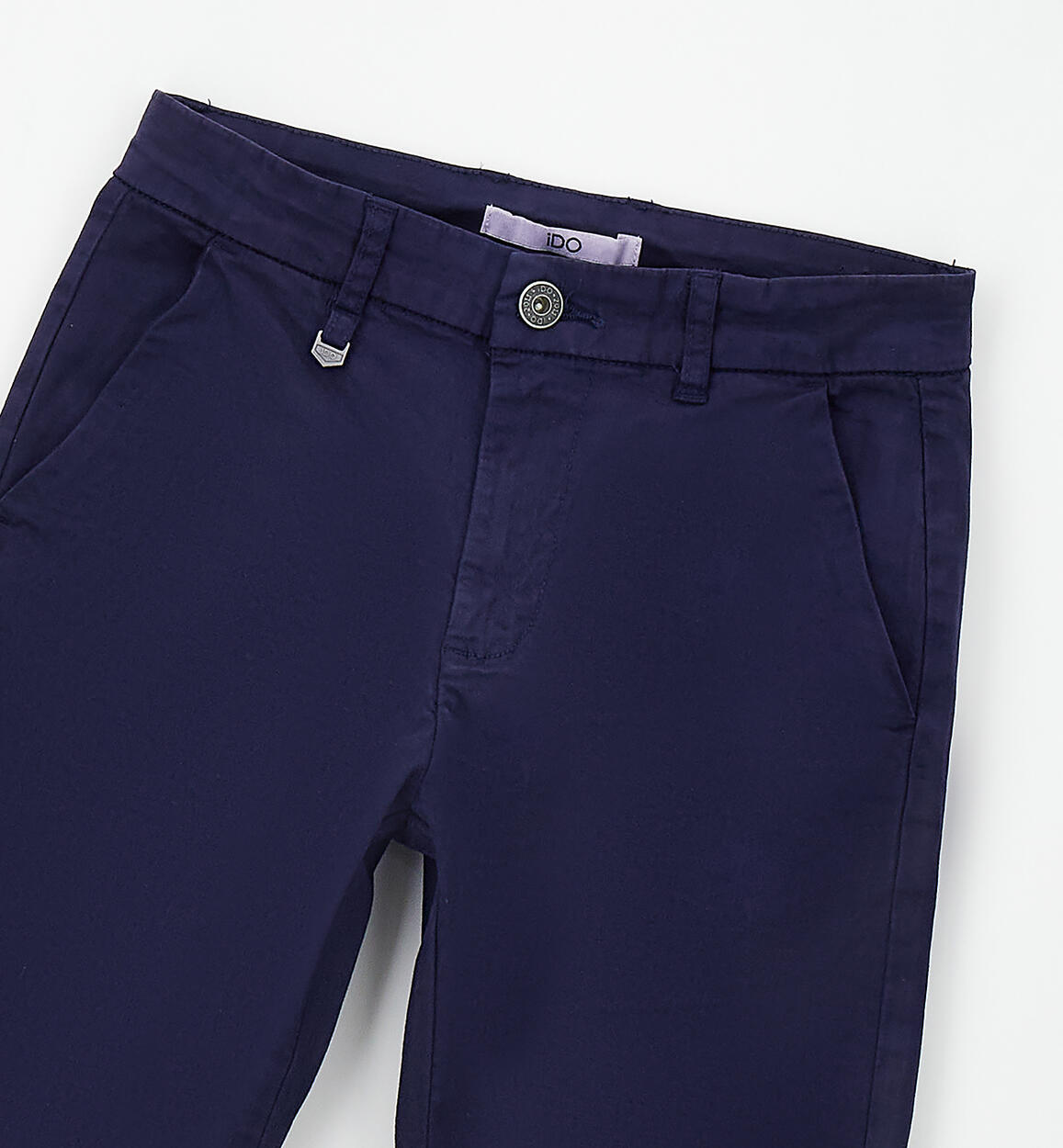 iDO boys' long trousers made from stretch cotton twill with zip and button fastening. Regular fit. Adjustable waist with internal elasticated drawstring.