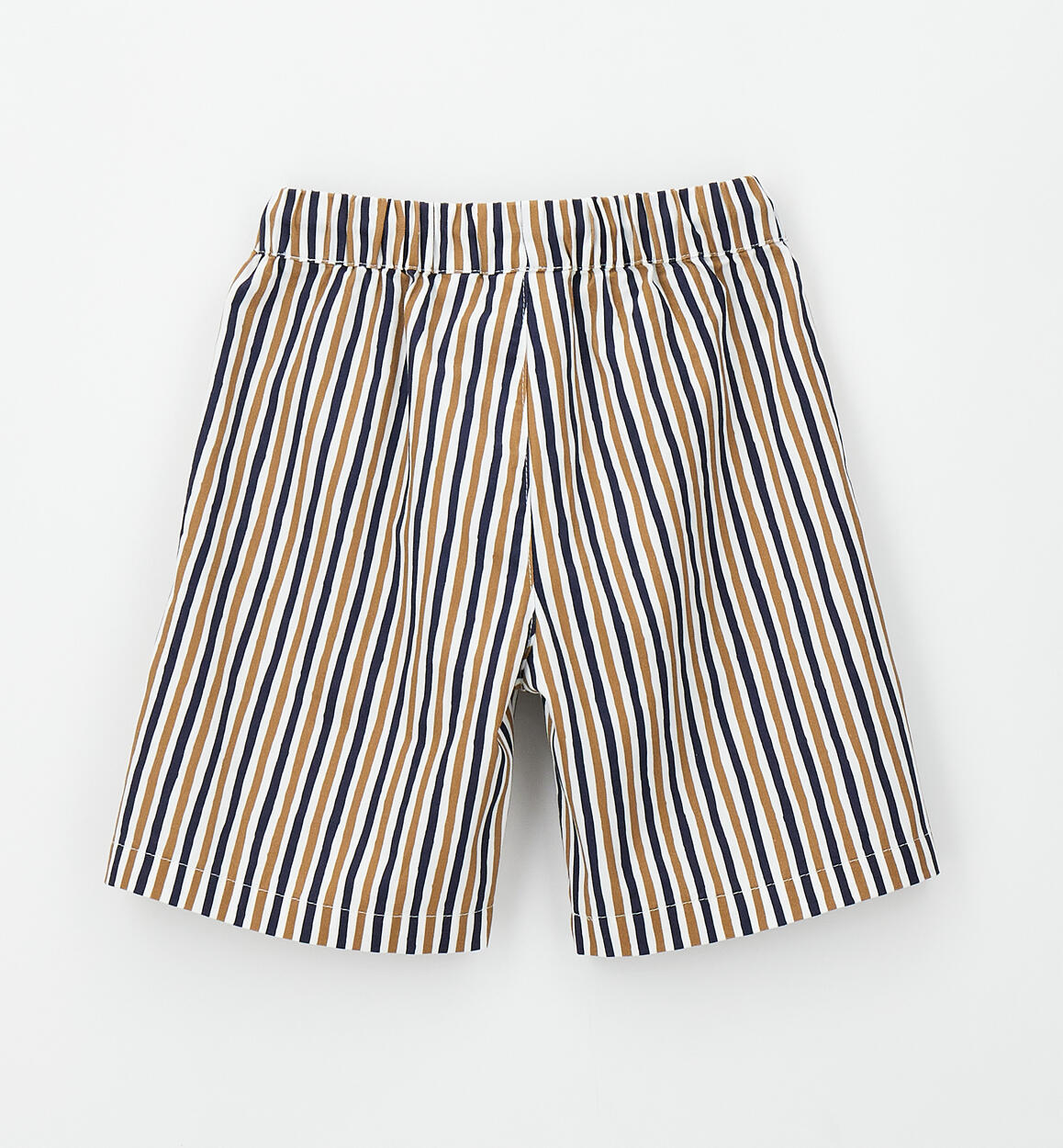 iDO boys' shorts made from lightweight 100% cotton twill with a striped pattern. Regular fit. Knee length. Elasticated waistband with drawstring. By choosing our cotton products, you are supporting iDO's commitment to the Better Cotton mission. This product is supplied through a mass balance system and may not contain Better Cotton. Read more at bettercotton.org/massbalance
