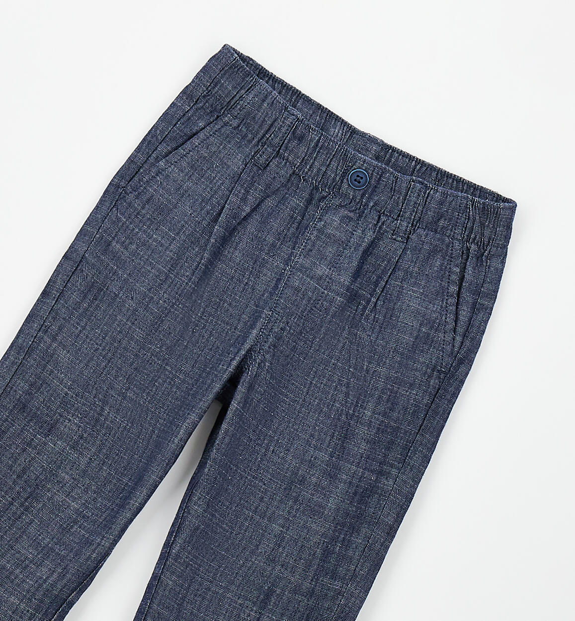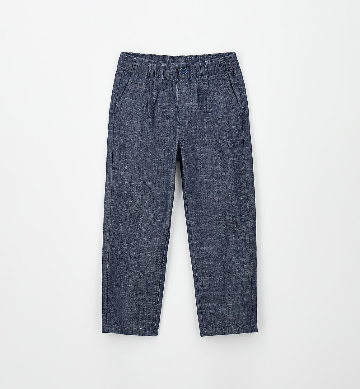 iDO boys' long trousers in 100% cotton with adjustable waistband featuring internal elasticated drawstring. Relaxed fit. Elasticated waistband. By choosing our cotton products, you are supporting iDO's commitment to the Better Cotton mission. This product is supplied through a mass balance system and may not contain Better Cotton. Read more at bettercotton.org/massbalance