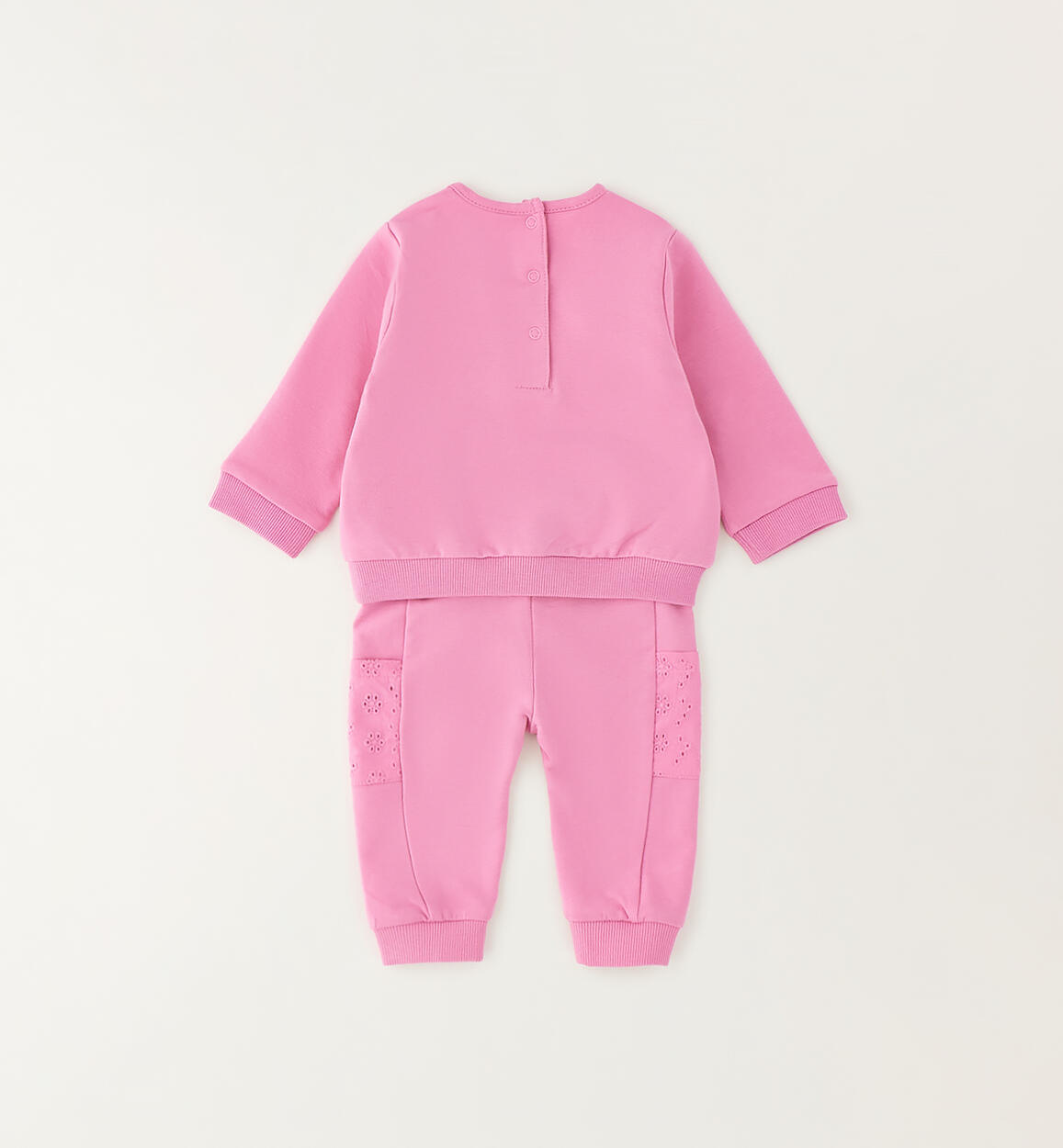 iDO jumpsuit for girls aged 1 to 24 months, made from stretch cotton French terry with broderie anglaise details. The sweatshirt has a press stud fastening at the back. The front is embellished with embroidery and appliqué details. Trousers with an elasticated waistband and drawstring. By choosing our cotton products, you are supporting our investment in the Better Cotton Initiative. This product is supplied through a mass balance system and may not contain Better Cotton. Read more at bettercotton.org/massbalance