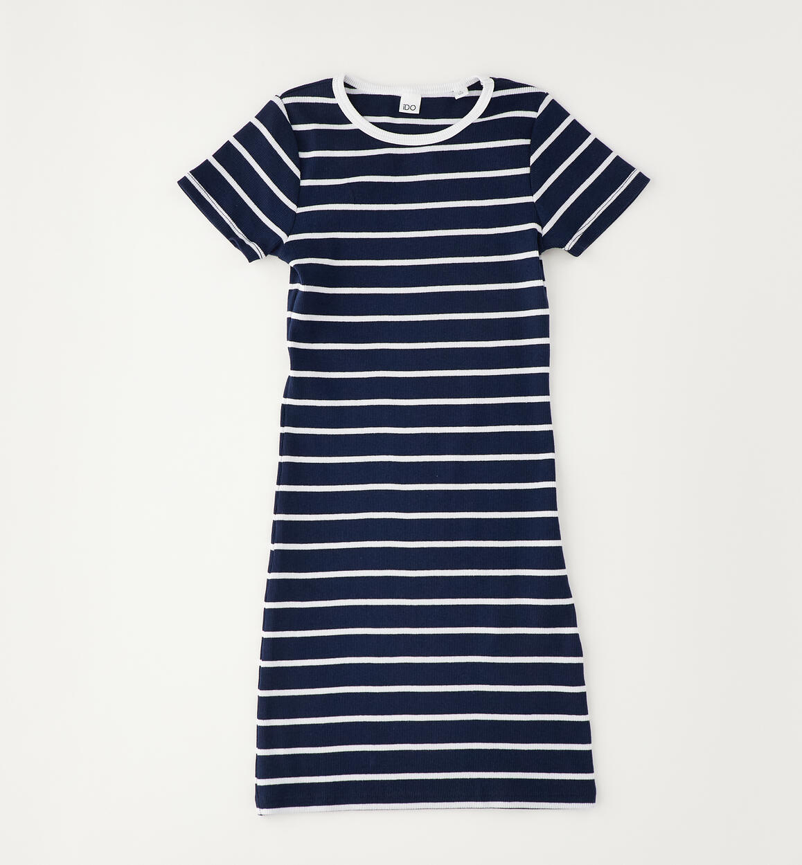 Abito in per ragazza iDO, a manica corta, realizzato in costina di cotone stretch. Lunghezza sopra al ginocchio