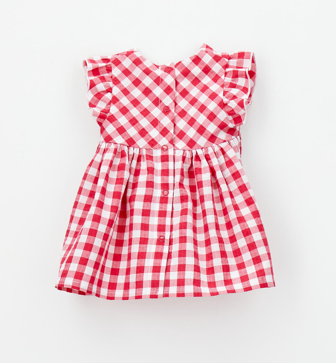 Abito estivo iDO per bimba da 1 a 24 mesi realizzato in tessuto vichy di cotone dalla fantasia a quadretti. Modello smanicato con ruches e apertura sul retro con bottoni a pressione. Lunghezza sopra al ginocchio. Scegliendo i nostri prodotti in cotone, sostieni il nostro investimento nella missione Better Cotton. La fornitura di questo prodotto avviene tramite un sistema di bilancio di massa e potrebbe non contenere Better Cotton. Leggi di più su bettercotton.org/massbalance