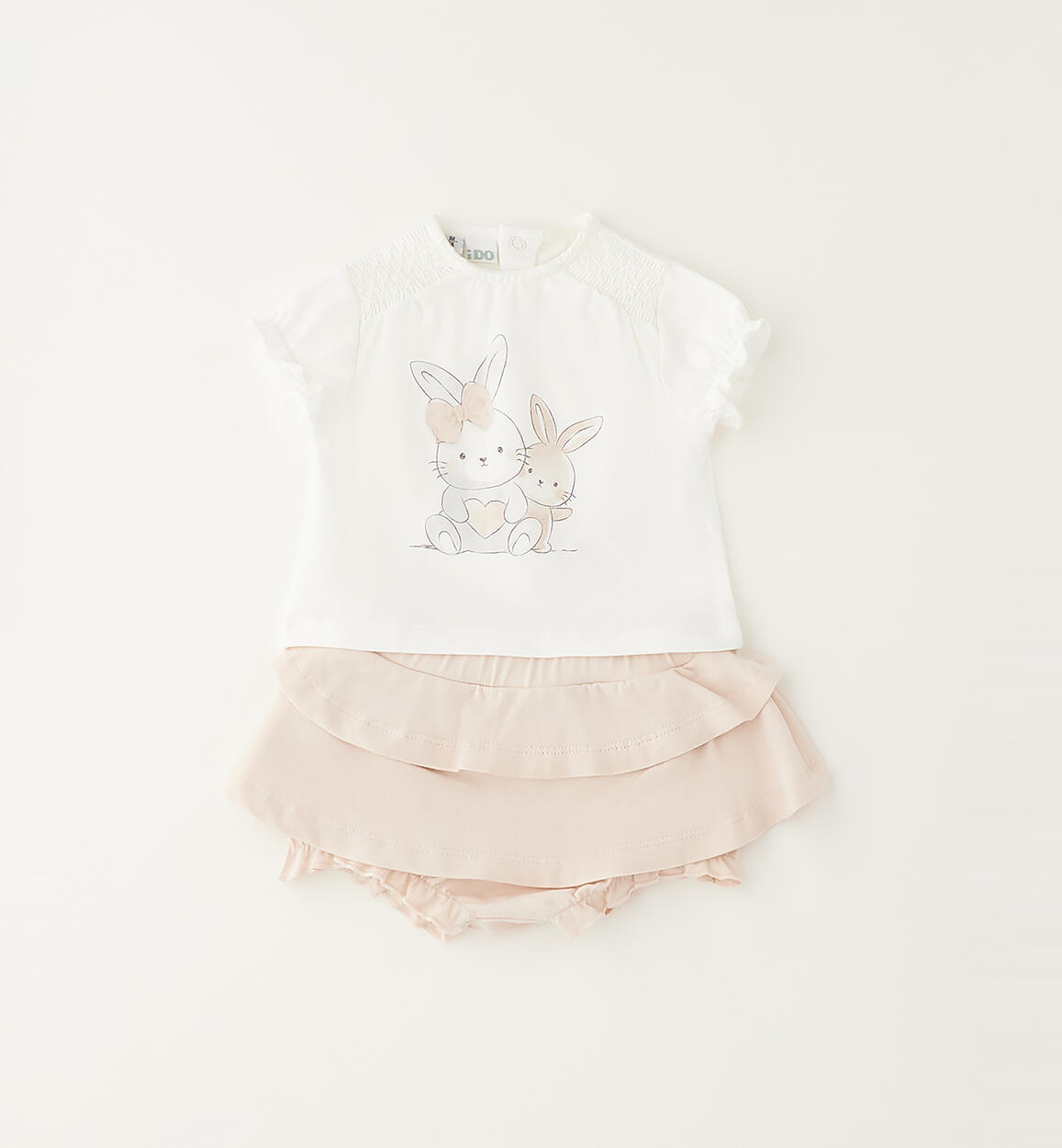 Completo per bimba iDO 1-24 mesi. La t-shirt è realizzata in jersey stretch con dolce stampa coniglietti e ricamo sulle spalle. Apertura sul retro con bottoni a pressione. Shorts in jersey stretch con lavorazione a pois. Scegliendo i nostri prodotti in cotone, sostieni il nostro investimento nella missione Better Cotton. La fornitura di questo prodotto avviene tramite un sistema di bilancio di massa e potrebbe non contenere Better Cotton. Leggi di più su bettercotton.org/massbalance