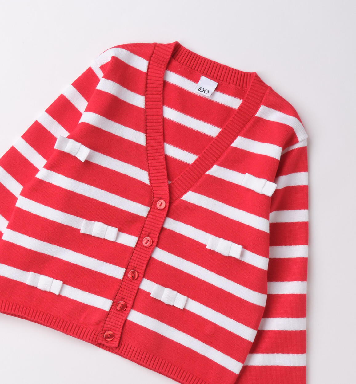 Cardigan per bambina iDO realizzato in morbido tricot a righe con fiocchi in applicazione. Apertura con bottoni