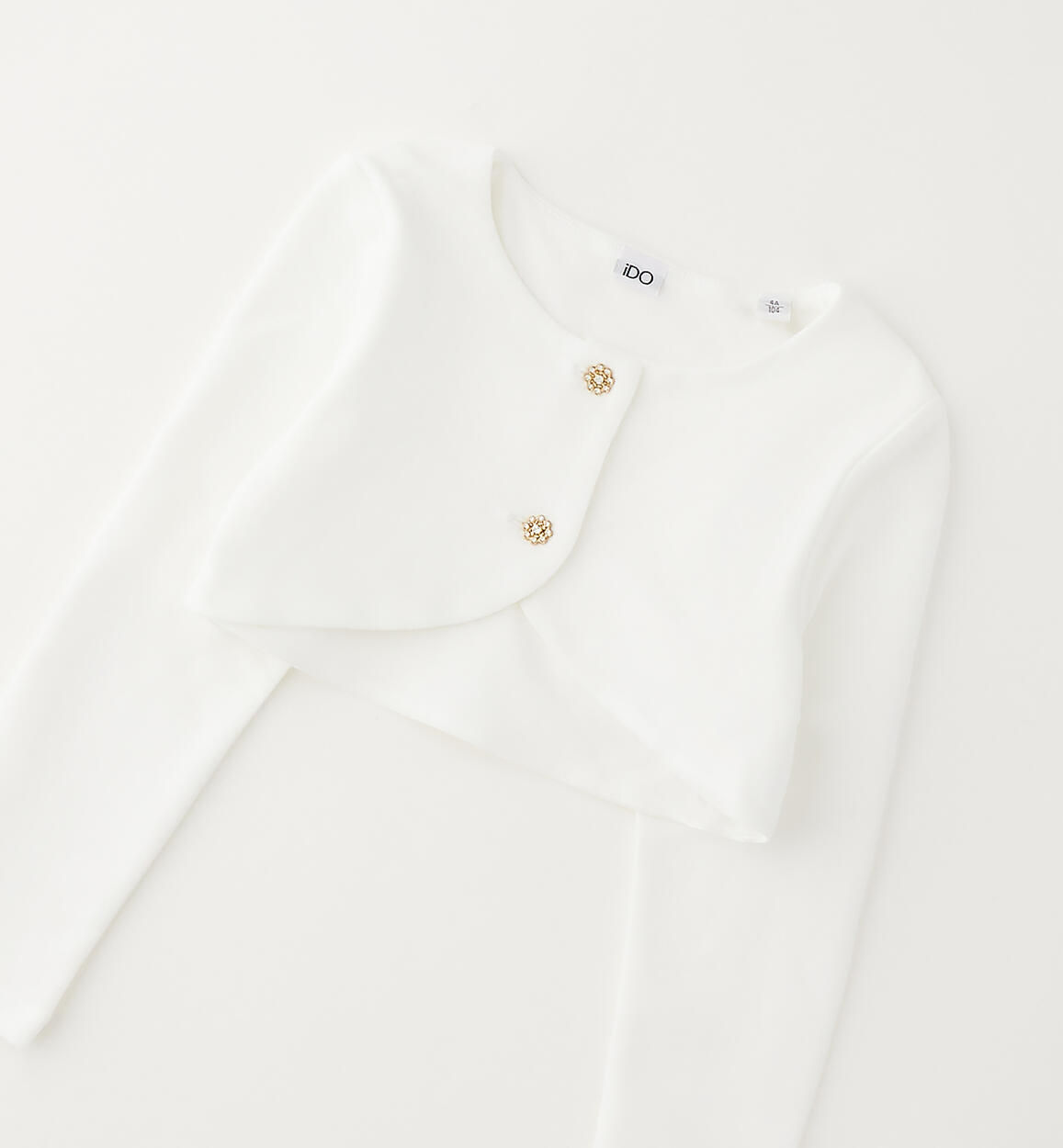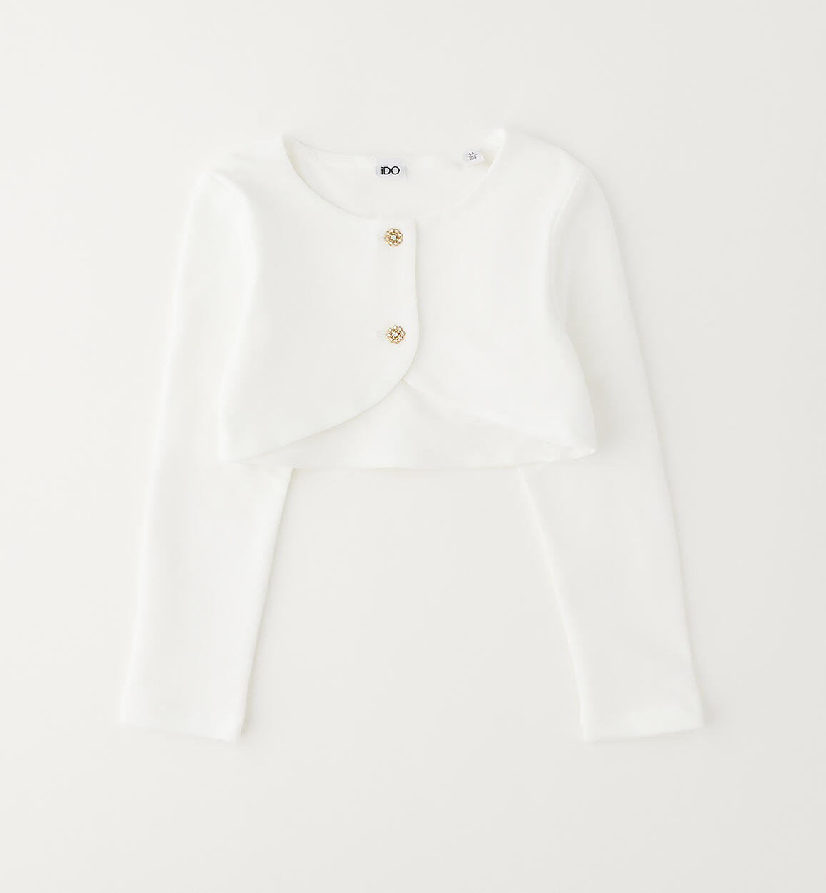 Elegante coprispalle iDO per bambina realizzato in felpa stretch di cotone con fodera in jersey. Apertura con bottoni gioiello. Scegliendo i nostri prodotti in cotone, sostieni l'impegno di iDO nella missione Better Cotton. La fornitura di questo prodotto avviene tramite un sistema di bilancio di massa e potrebbe non contenere Better Cotton. Leggi di più su bettercotton.org/massbalance