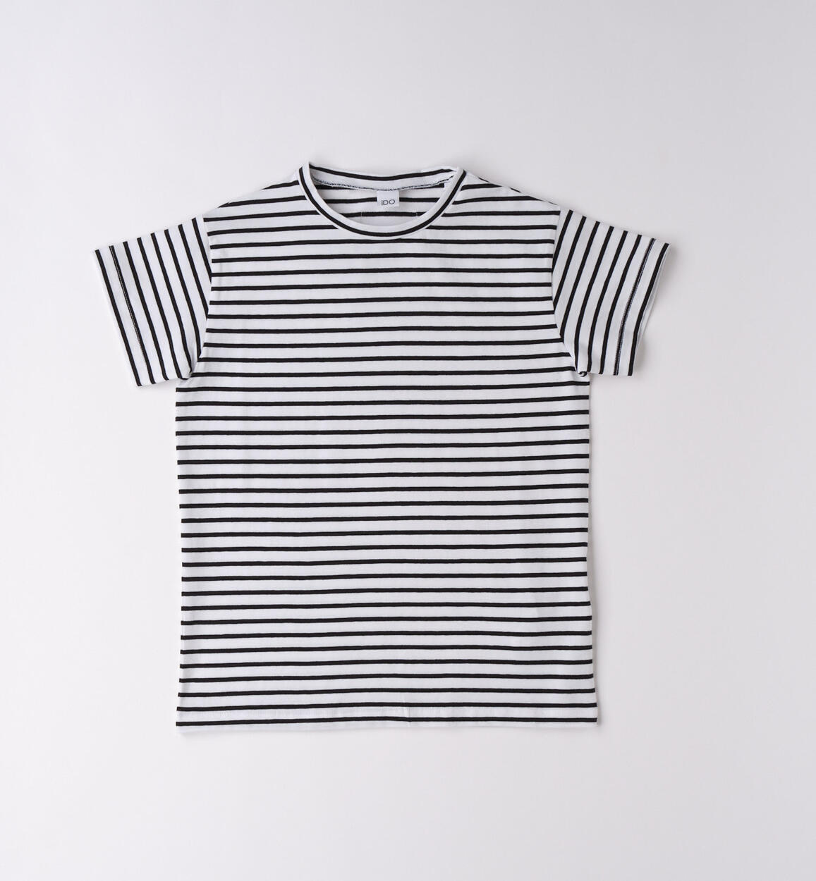 T-shirt per ragazza iDO realizzata in jersey stretch di cotone dalla fantasia a righe con etichetta in applicazione dietro