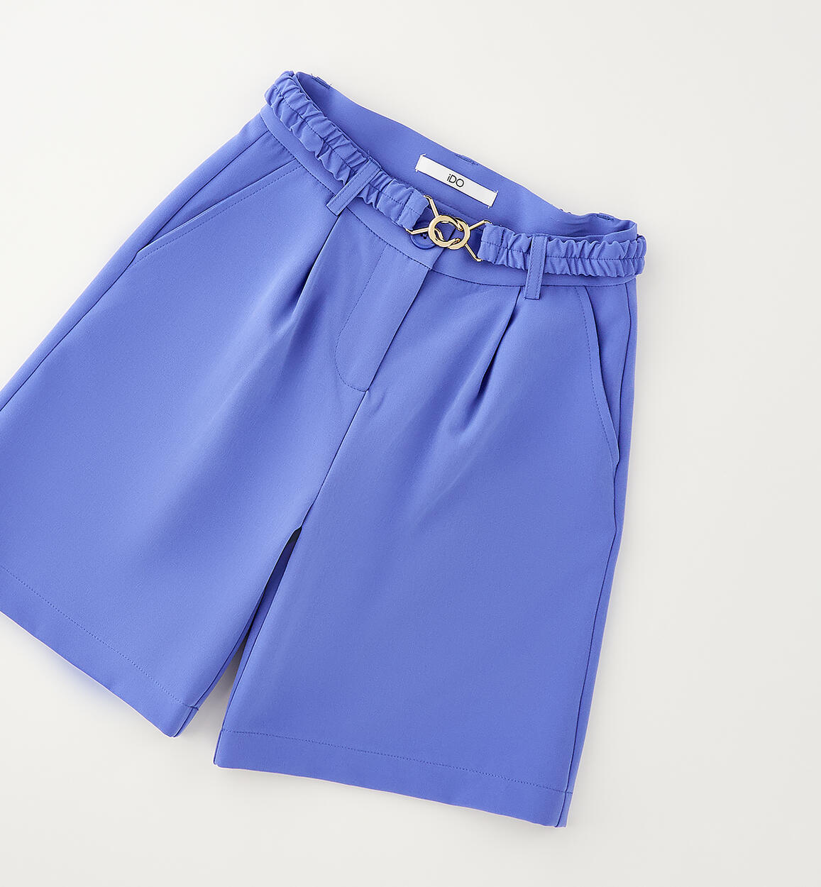 Pantalone corto elegante per ragazza iDO realizzato in speciale twill stretch con apertura tramite bottone e zip. Fodera in satin. Vita regolabile con elastico asolato interno. Cintura elastica con fibbia