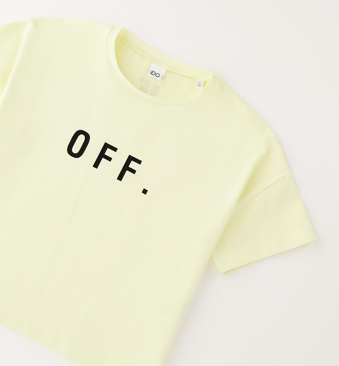T-shirt per ragazza iDO realizzata in jersey stretch di cotone, colore giallo chiaro con stampa "Off"