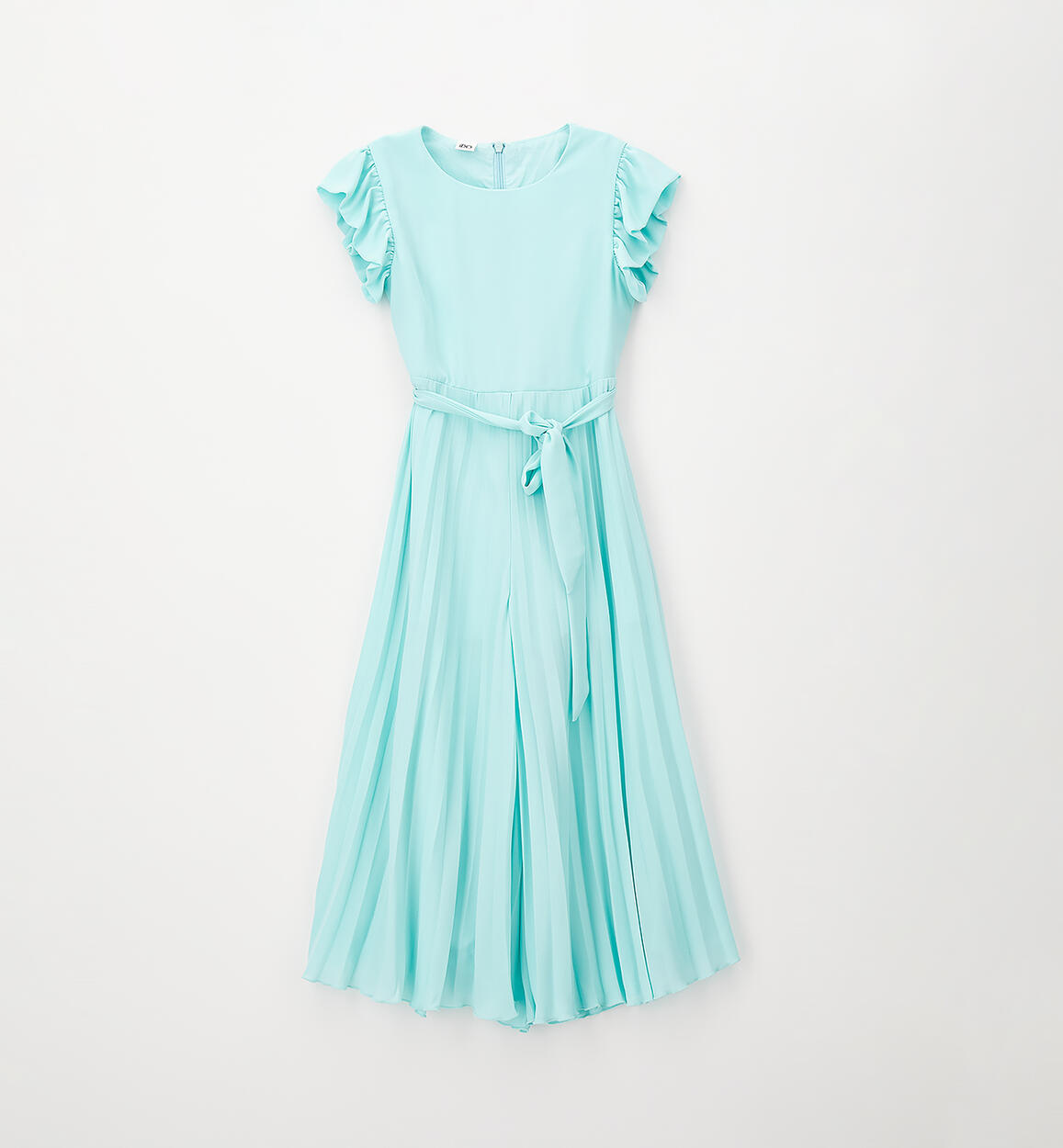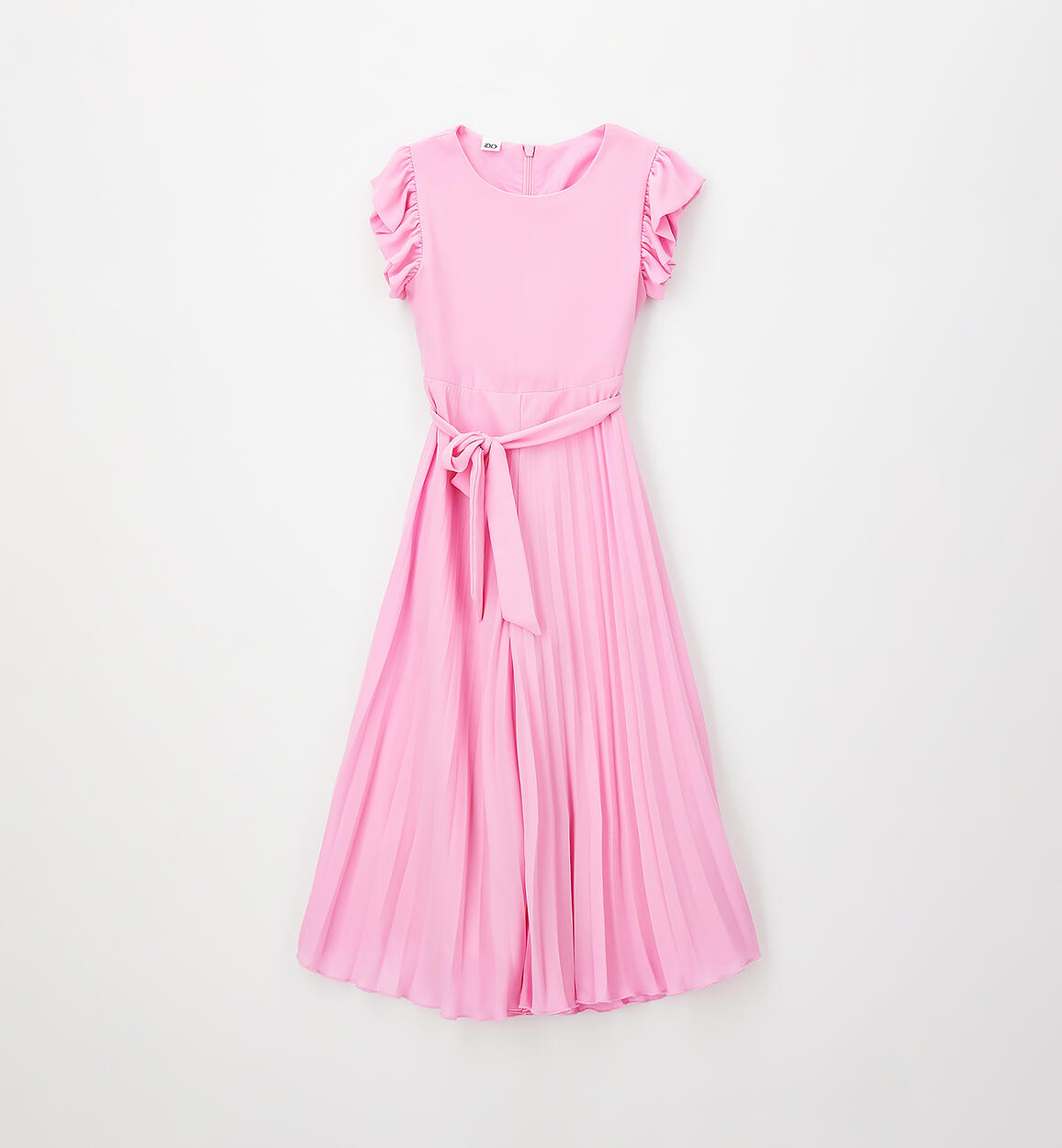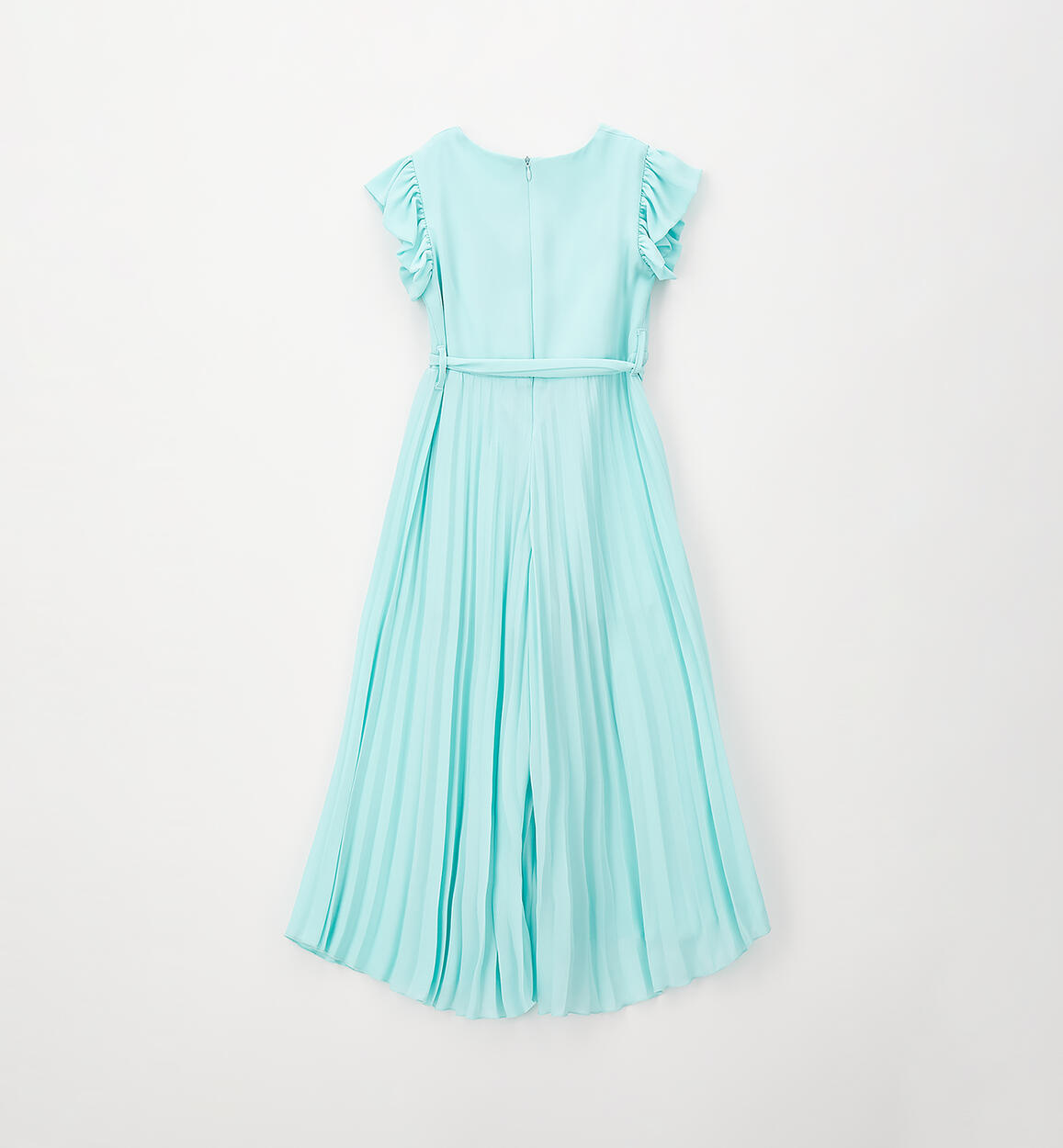 Tuta elegante iDO per bambina realizzata in tessuto crepe. Ruches sulla manica e pantalone plissettato con fodera fino al ginocchio. Cintura in vita. Top foderato in cotone. Apertura sulla schiena con zip invisibile