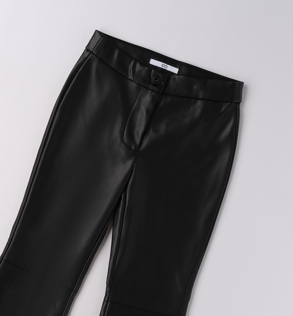 Pantaloni per ragazza iDO 8-16 anni realizzati in tessuto lucido. Apertura con zip e bottone. Vita regolabile con elastico asolato interno