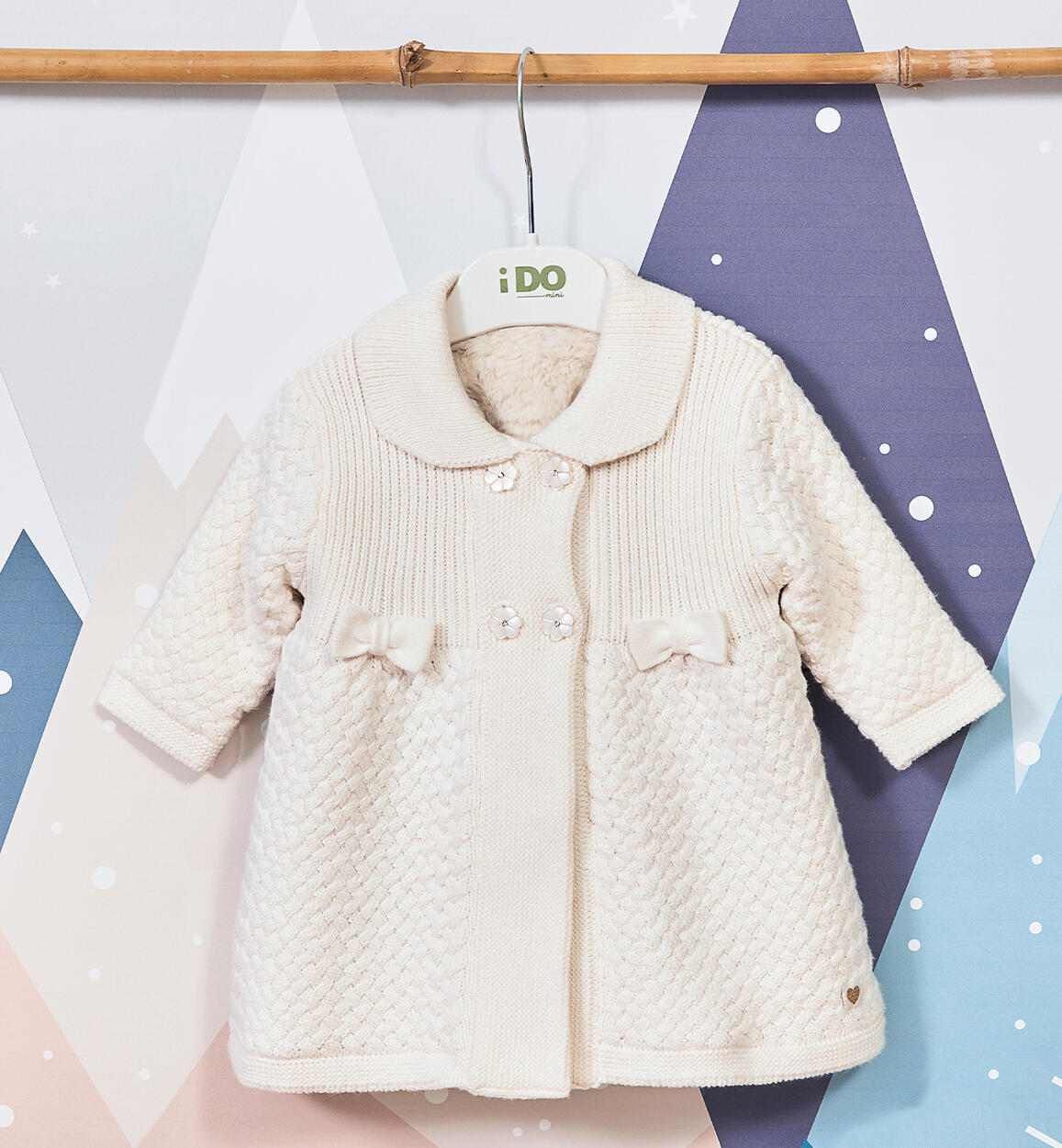 Cappotto per neonata iDO 1-24 mesi realizzato in tricot 100% cotone con fodera in caldo e morbido tessuto. Scegliendo i nostri prodotti in cotone, sostieni il nostro investimento nella missione Better Cotton. La fornitura di questo prodotto avviene tramite un sistema di bilancio di massa e potrebbe non contenere Better Cotton. Leggi di più su bettercotton.org/massbalance