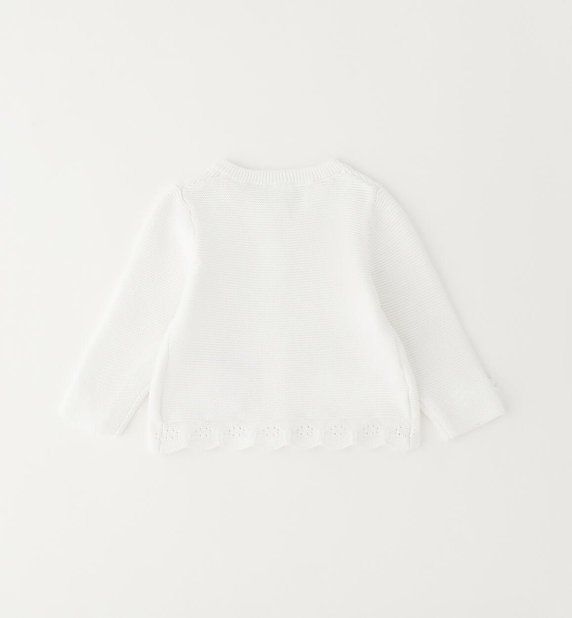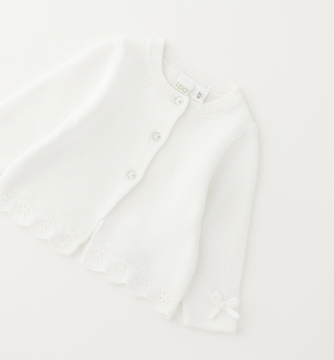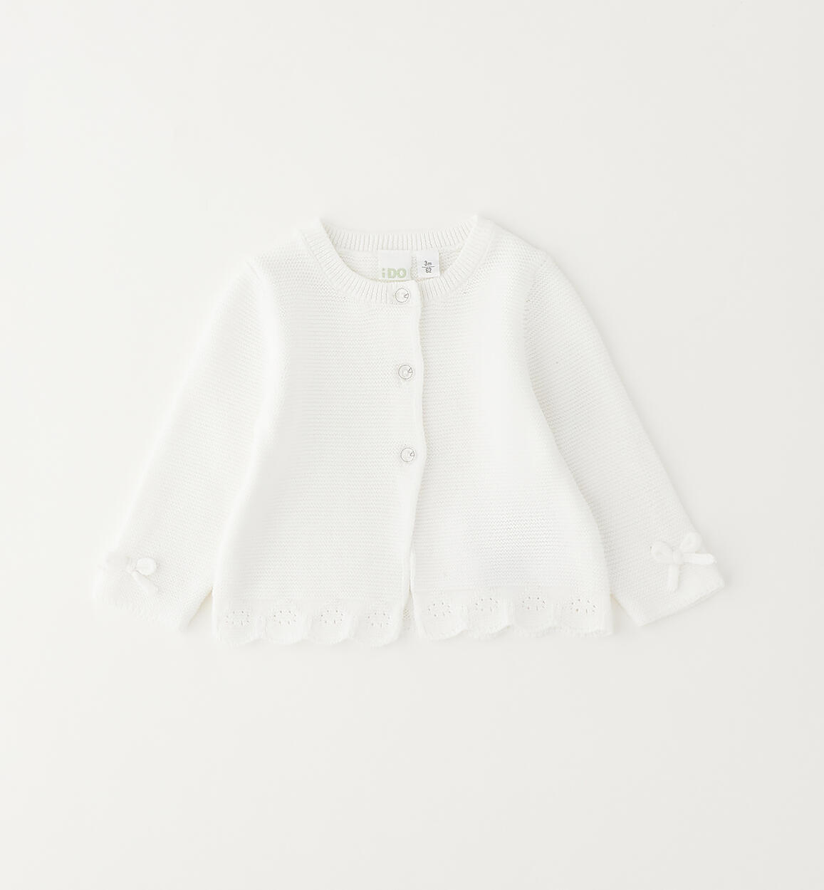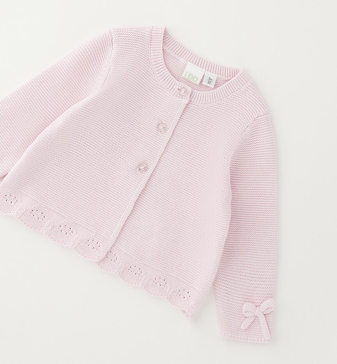 Cardigan per bimba iDO da 1 a 24 mesi realizzato in morbido tricot lavorato 100% cotone. Apertura con bottoni e fiocchi in applicazione sul fondo manica. Scegliendo i nostri prodotti in cotone, sostieni il nostro investimento nella missione Better Cotton. La fornitura di questo prodotto avviene tramite un sistema di bilancio di massa e potrebbe non contenere Better Cotton. Leggi di più su bettercotton.org/massbalance