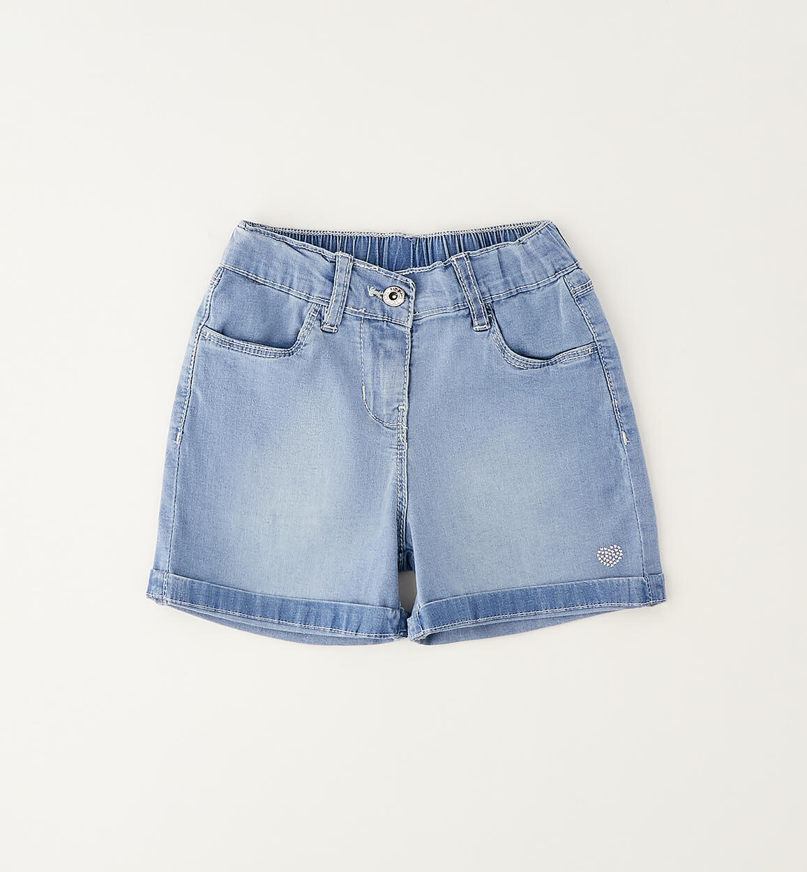 Pantalone corto in denim stretch di cotone per bambina iDO. Risvoltino sul fondo, piccolo cuore di strass. Apertura con zip e bottone. Scegliendo i nostri prodotti in cotone, sostieni l'impegno di iDO nella missione Better Cotton. La fornitura di questo prodotto avviene tramite un sistema di bilancio di massa e potrebbe non contenere Better Cotton. Leggi di più su bettercotton.org/massbalance