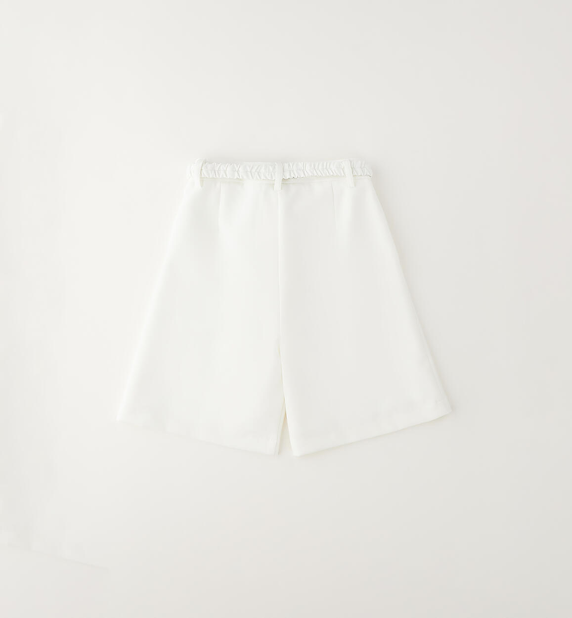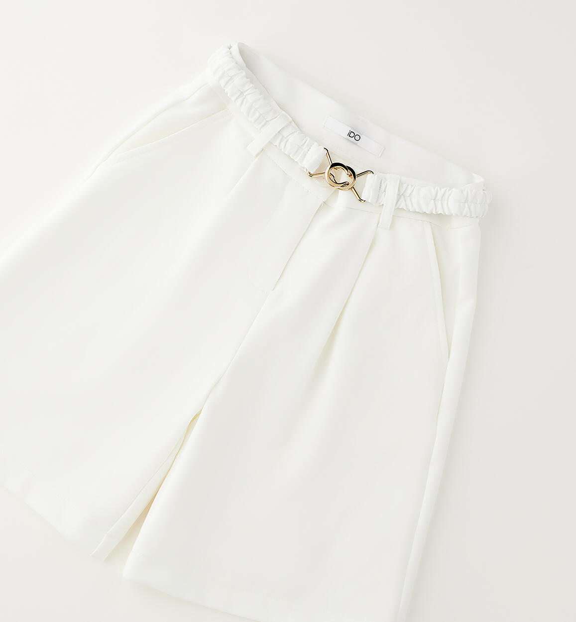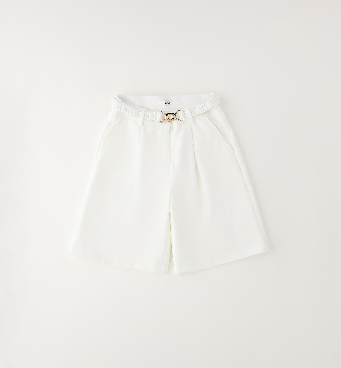 Pantalone corto elegante per ragazza iDO realizzato in speciale twill stretch con apertura tramite bottone e zip. Fodera in satin. Vita regolabile con elastico asolato interno. Cintura elastica con fibbia
