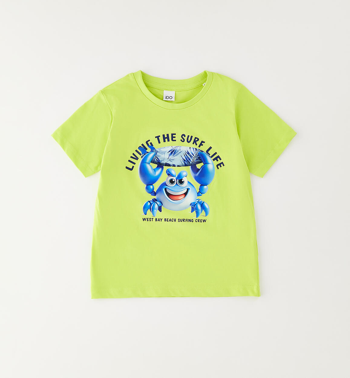 T-shirt per bambino iDO realizzata in jersey 100% cotone con stampa granchio. Scegliendo i nostri prodotti in cotone, sostieni l'impegno di iDO nella missione Better Cotton. La fornitura di questo prodotto avviene tramite un sistema di bilancio di massa e potrebbe non contenere Better Cotton. Leggi di più su bettercotton.org/massbalance