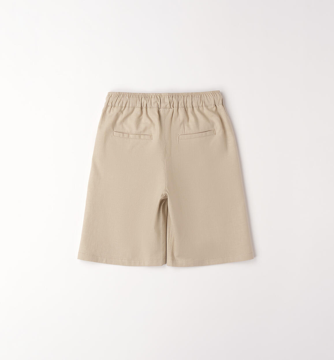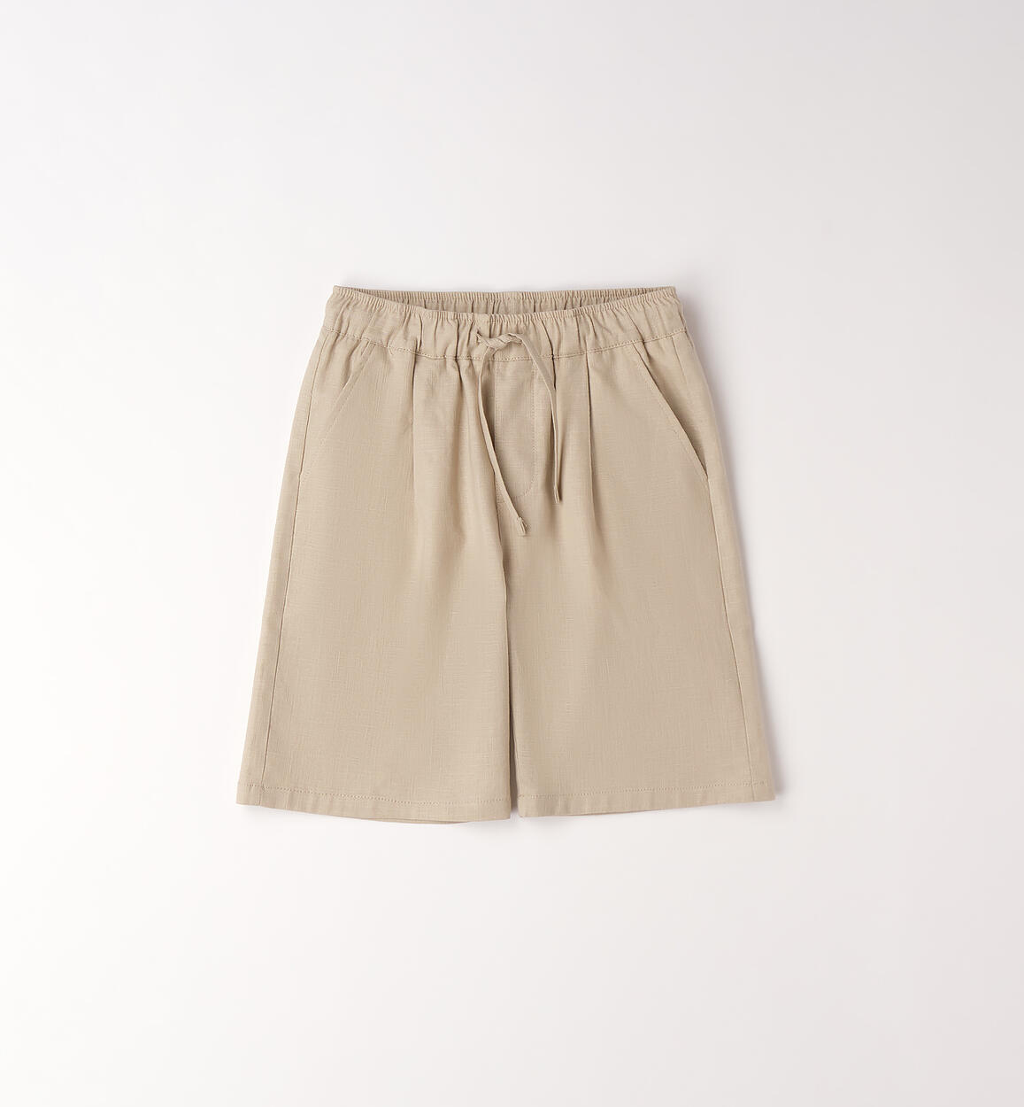 Pantalone corto per ragazzo iDO realizzato in lino e cotone con elastico in vita e coulisse. Vita regolabile con elastico asolato interno