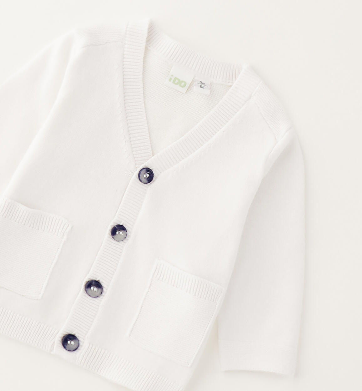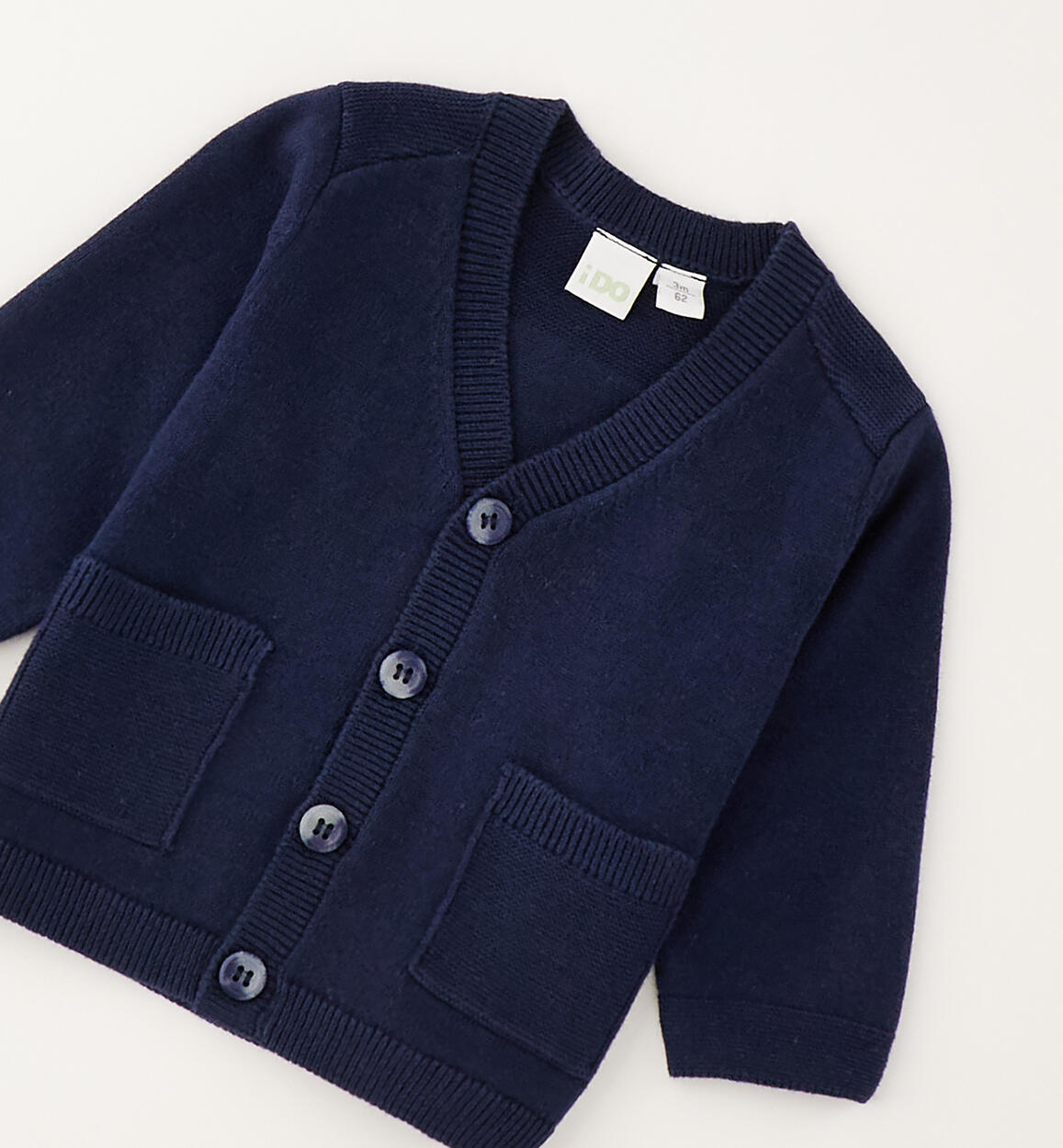 Cardigan per bimbo iDO da 1 a 24 mesi realizzato in tricot leggero 100% cotone. Apertura con bottoni e taschine davanti. Scegliendo i nostri prodotti in cotone, sostieni il nostro investimento nella missione Better Cotton. La fornitura di questo prodotto avviene tramite un sistema di bilancio di massa e potrebbe non contenere Better Cotton. Leggi di più su bettercotton.org/massbalance