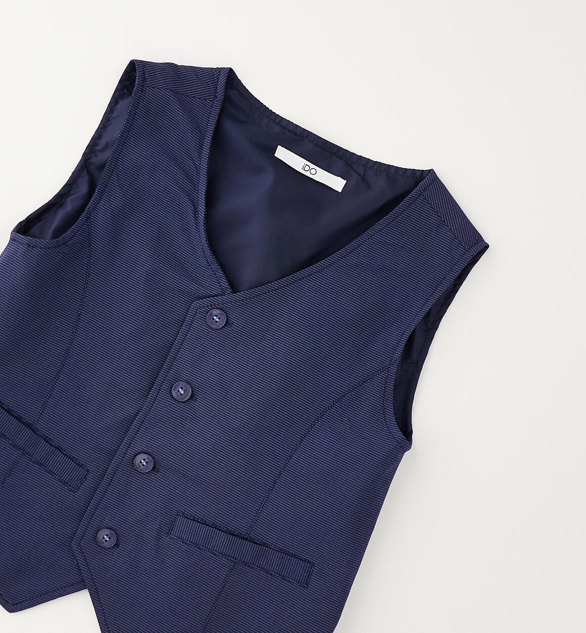 Gilet elegante per ragazzo iDO realizzato in tessuto con micro fantasia. Finte tasche e apertura con bottoni