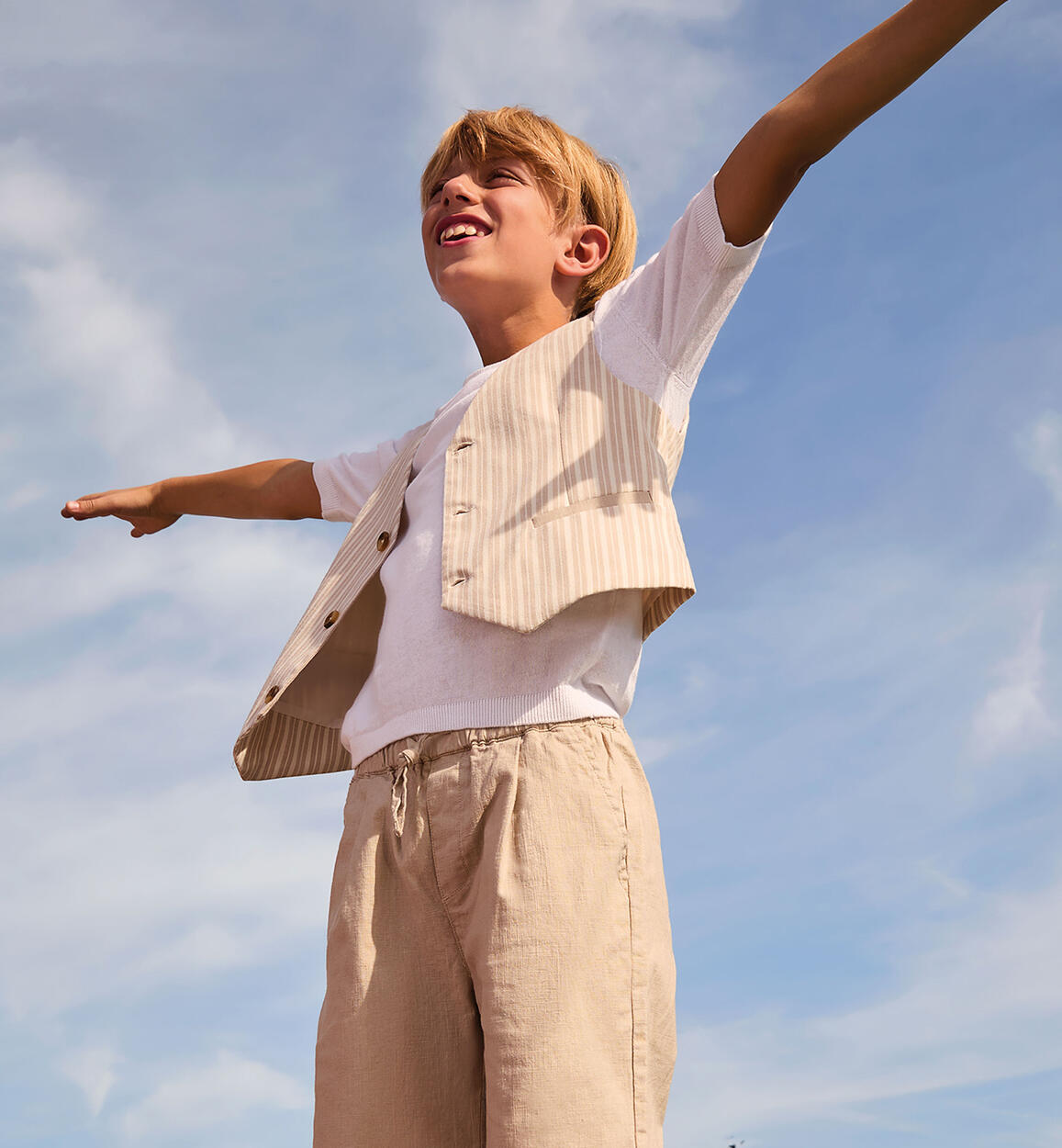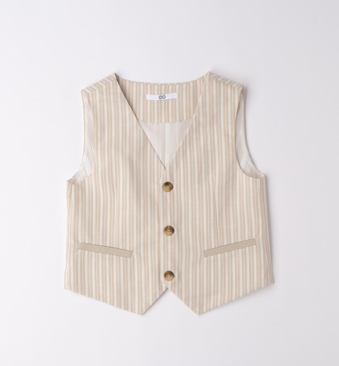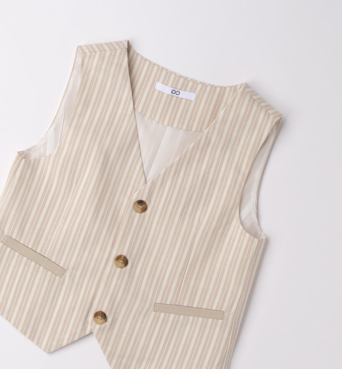 Gilet elegante per ragazzo iDO realizzato in tessuto a righe con apertura tramite bottoni. Martingala dietro